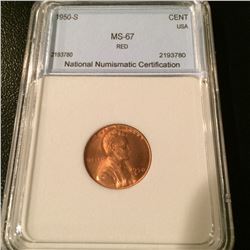 1950-S Lincoln Cent NNC MS67 Red