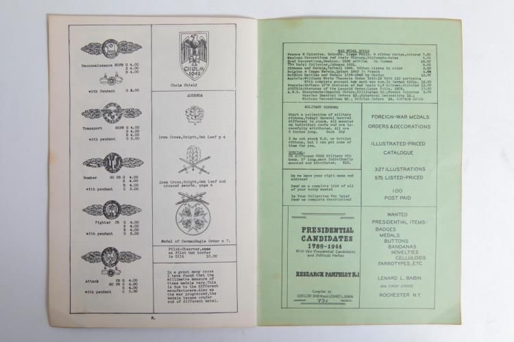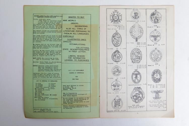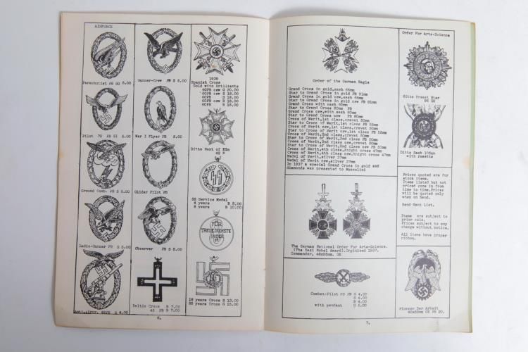 1950'S NAZI COLLECTIBLES CATALOGUE-INTERESTING PRICE LISTAMAZINGLY LOW PRICES COMPARES TO WHAT WE PAY TODAY