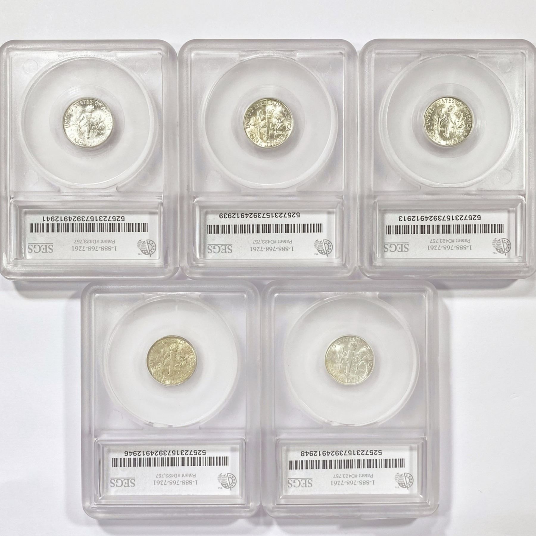 1950-S Set (5) Roosevelt Dime SEGS MS63