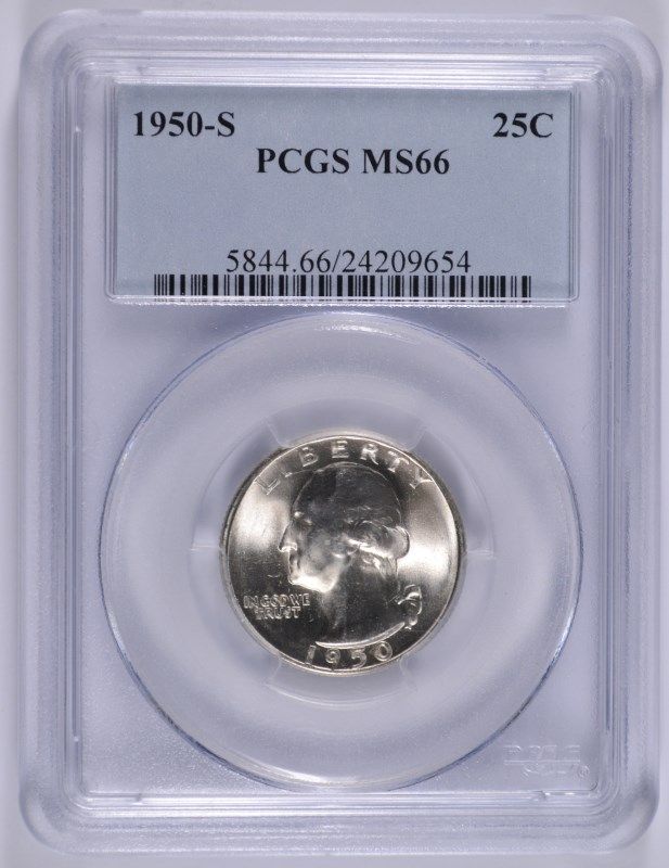 1950-S WASHINGTON QUARTER, PCGS MS-66 NICE!