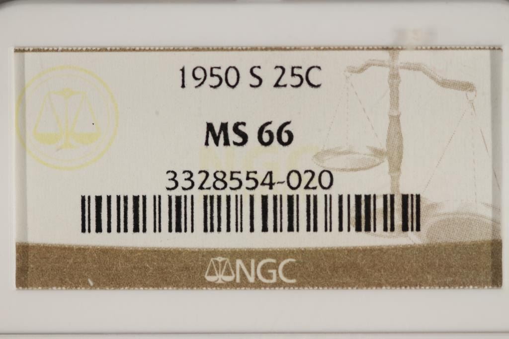 1950-S WASHINGTON SILVER QUARTER NGC MS66