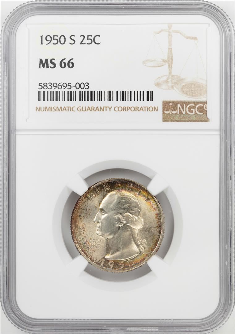 One 1950-S Washington Quarter Coin NGC MS66. NGC Certified.