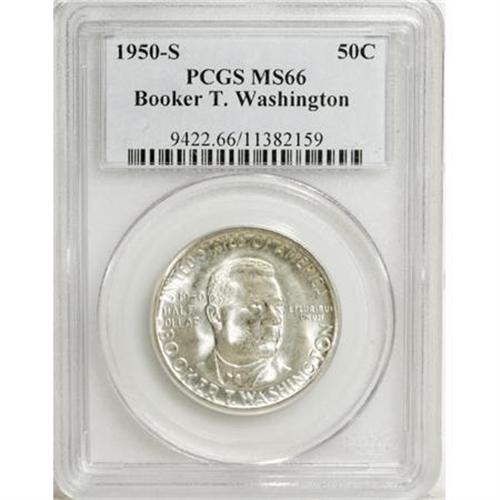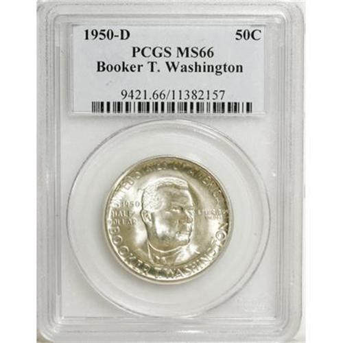 <B>1950 SET Booker T. Washington PDS Set MS66 PCGS.</B></I> An essentially brilliant trio of nicely matched Premium Gems. Both the P-mint and the D-mint in this set boast a mintage of just 6,004 pieces.<BR><BR><b>Shipping:</b> Coins & Currency (<a target="_blank" href="http://www.heritageauctions.com/common/shipping.php">view shipping information</a>)