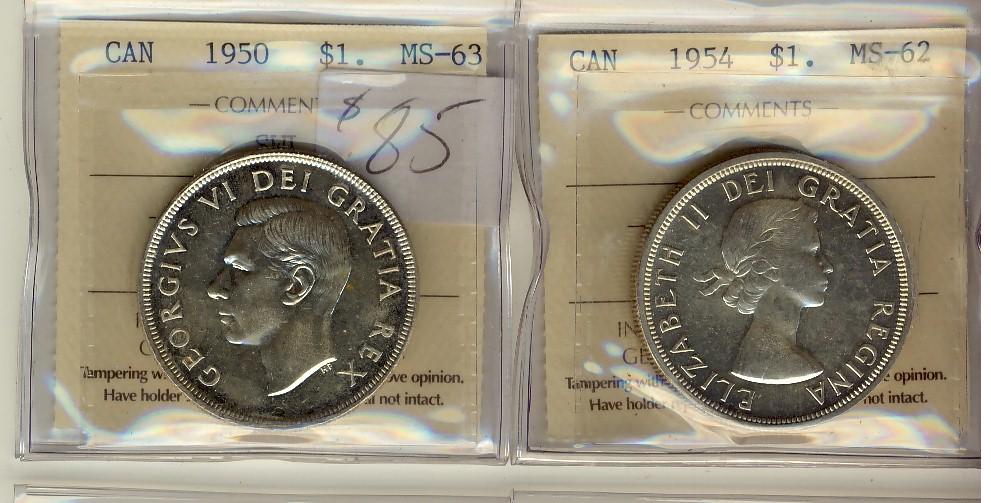 1950 SWL MS63 & 1954 $1 MS62. Lot of 2 ICCS graded coins.
