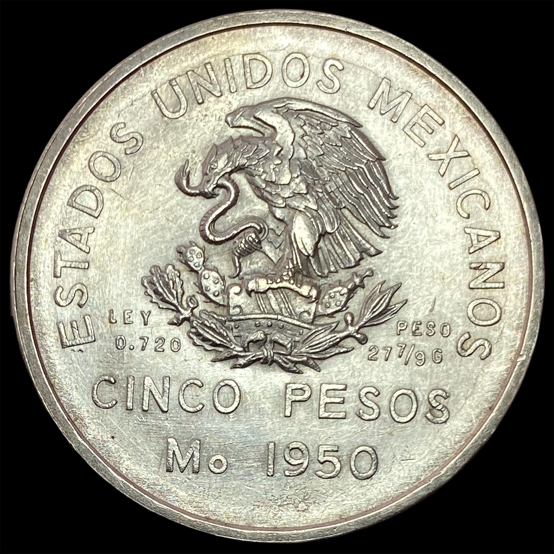 1950 Silver 5 Pesos Mexico HIGH GRADE