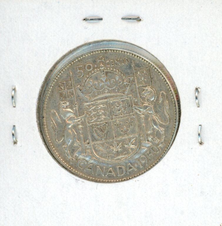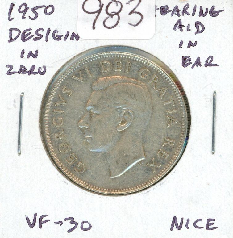 1950 Silver 50 Cents. DES with Hearing Aid in King’s Ear from Die Clash. VF-30. Scarce.