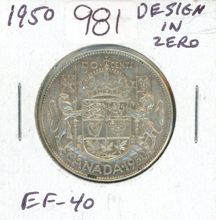 1950 Silver 50 Cents. Design in Zero in Date. EF-40. Nice.
