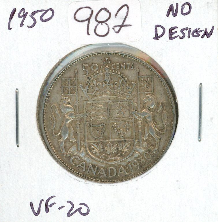 1950 Silver 50 Cents. No Design in Zero. VF-20. Hard to find.
