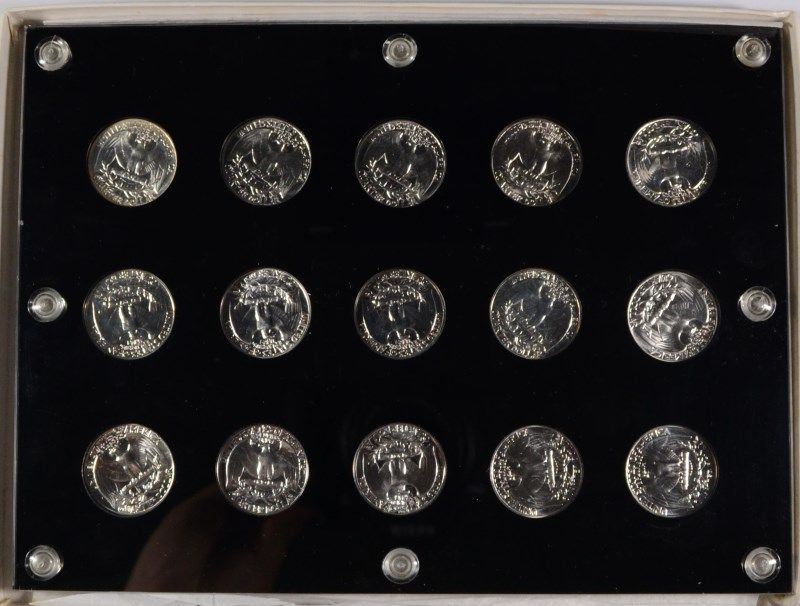 1950 THRU 1964 PROOF WASHINGTON QUARTER SET IN CAPITOL PLASTIC, ALL GEM PROOF
