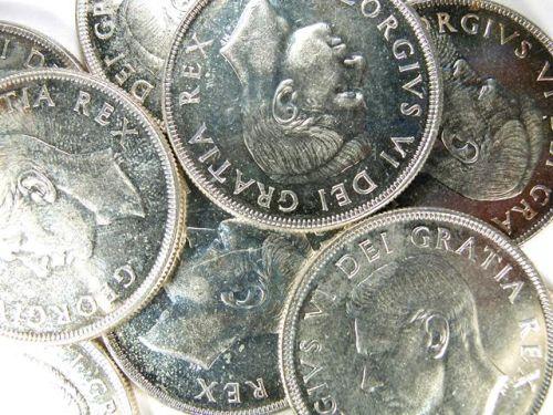 Canada Silver Dollar 1950, ten untoned to lightly toned pieces, Uncirculated to Choice Uncirculated