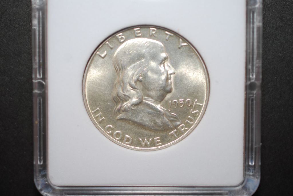 1950 US Ben Franklin Half Dollar; MCPCG Graded MS62 FBL; EST. $35-60
