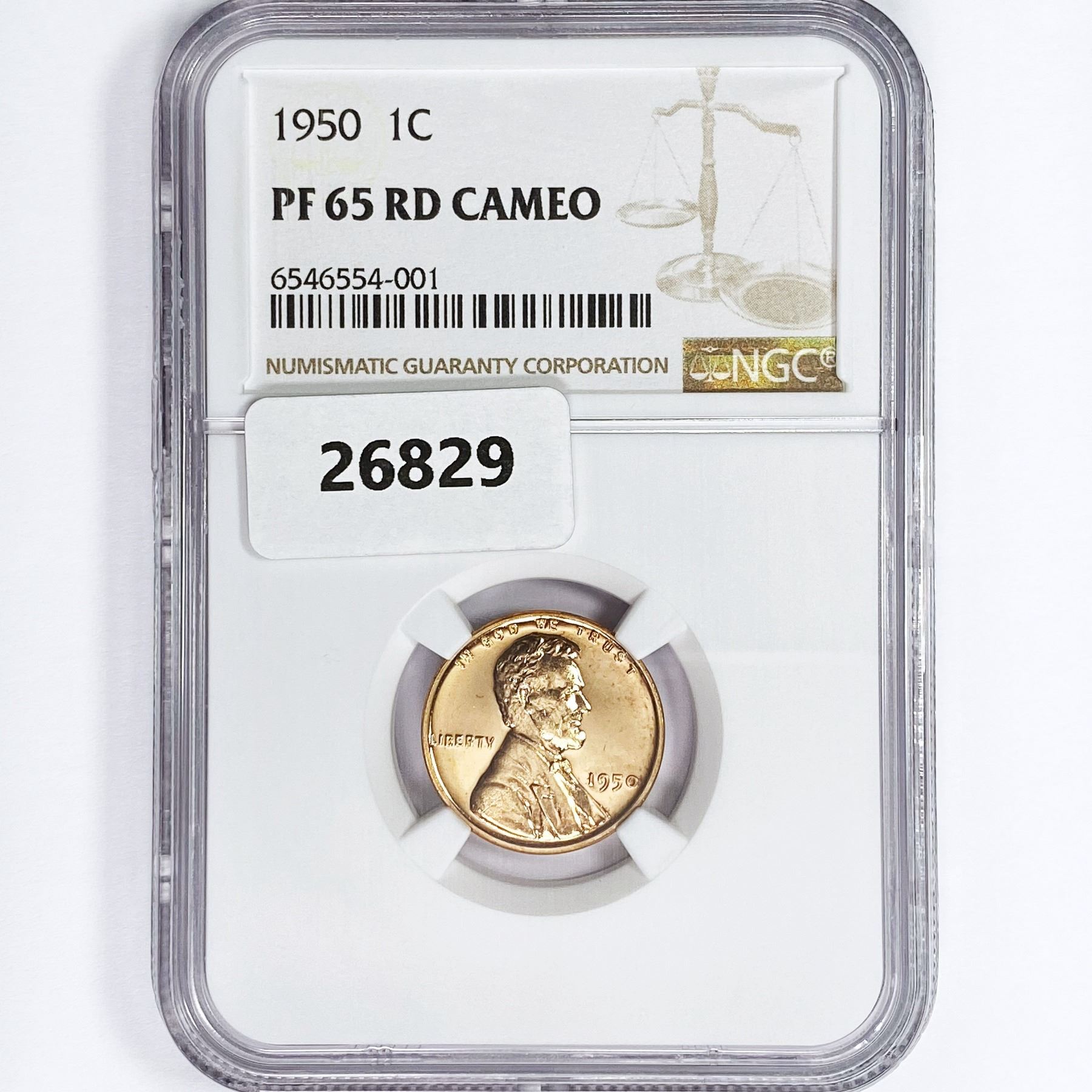 1950 Wheat Cent NGC PF65 RD, CAMEO