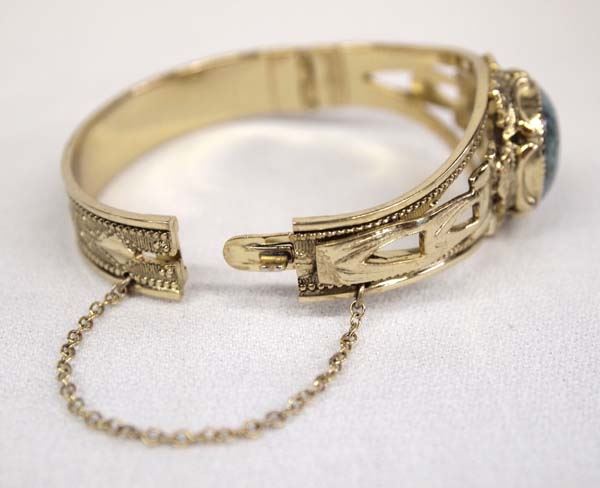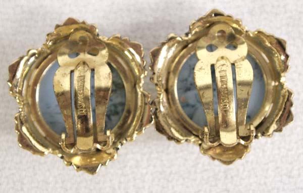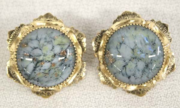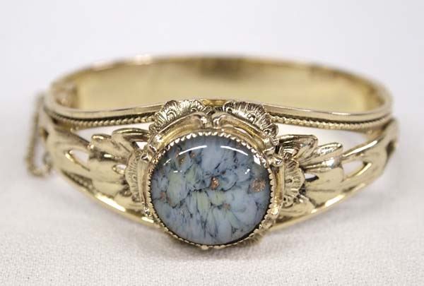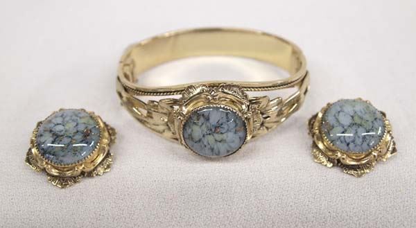 From the Posey Estate, we have a Beautiful 1950 Whiting & Davis Gold Foil Opal Bracelet and Clip-On Earrings, bracelet measures 2.5''W x 2''