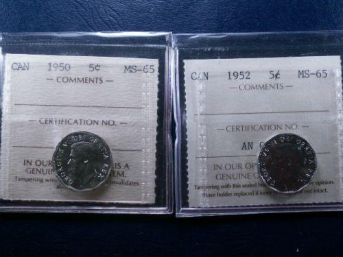 1950 and 1952 both ICCS MS65, well struck with full lustre. Two nice coins.