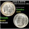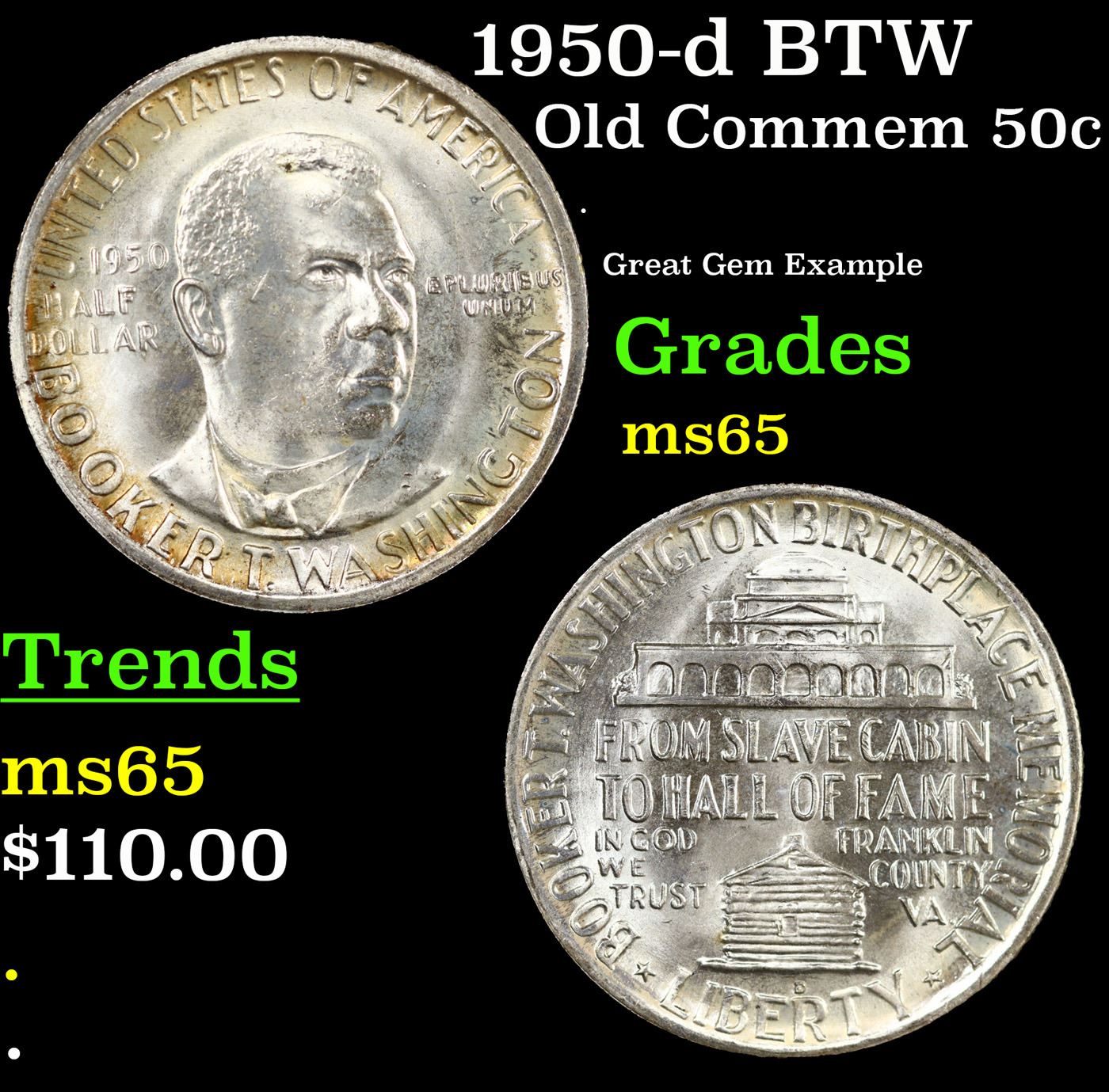 1950-d BTW Old Commem Half Dollar 50c Grades GEM Unc. When examining a Booker T. Washington commemorative look for wear on the high points, on the obverse that is Mr. Washington's right Cheek (from his perspective), and on the reverse the arches on the top building.