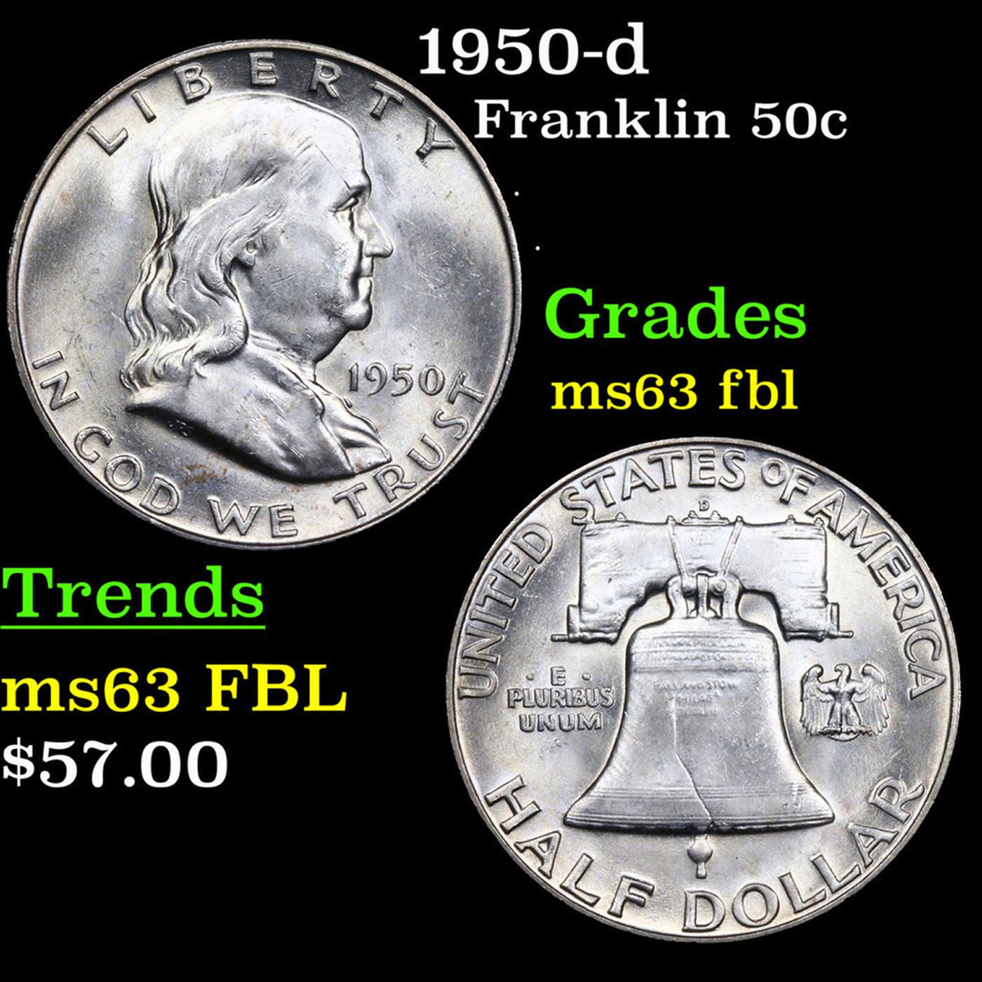 1950-d Franklin Half Dollar 50c Grades Select Unc FBL.