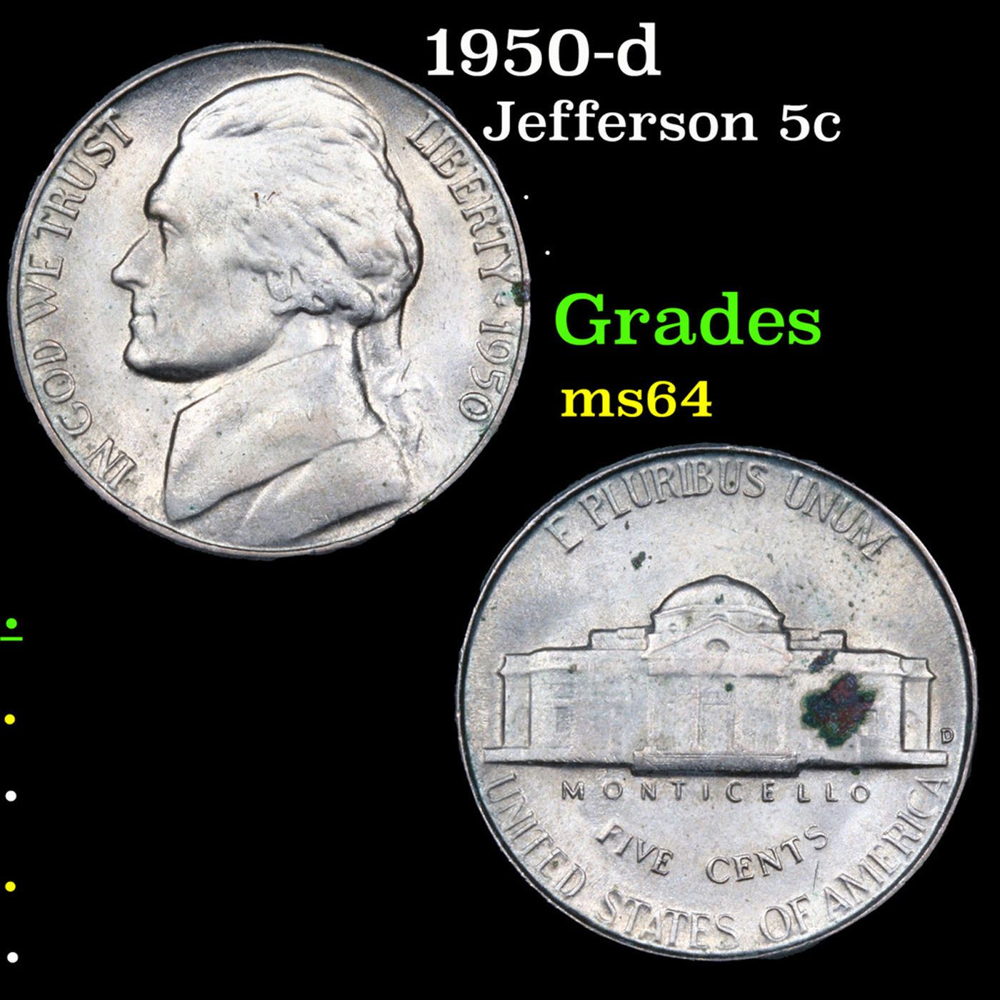 1950-d Jefferson Nickel 5c Grades Choice Unc.
