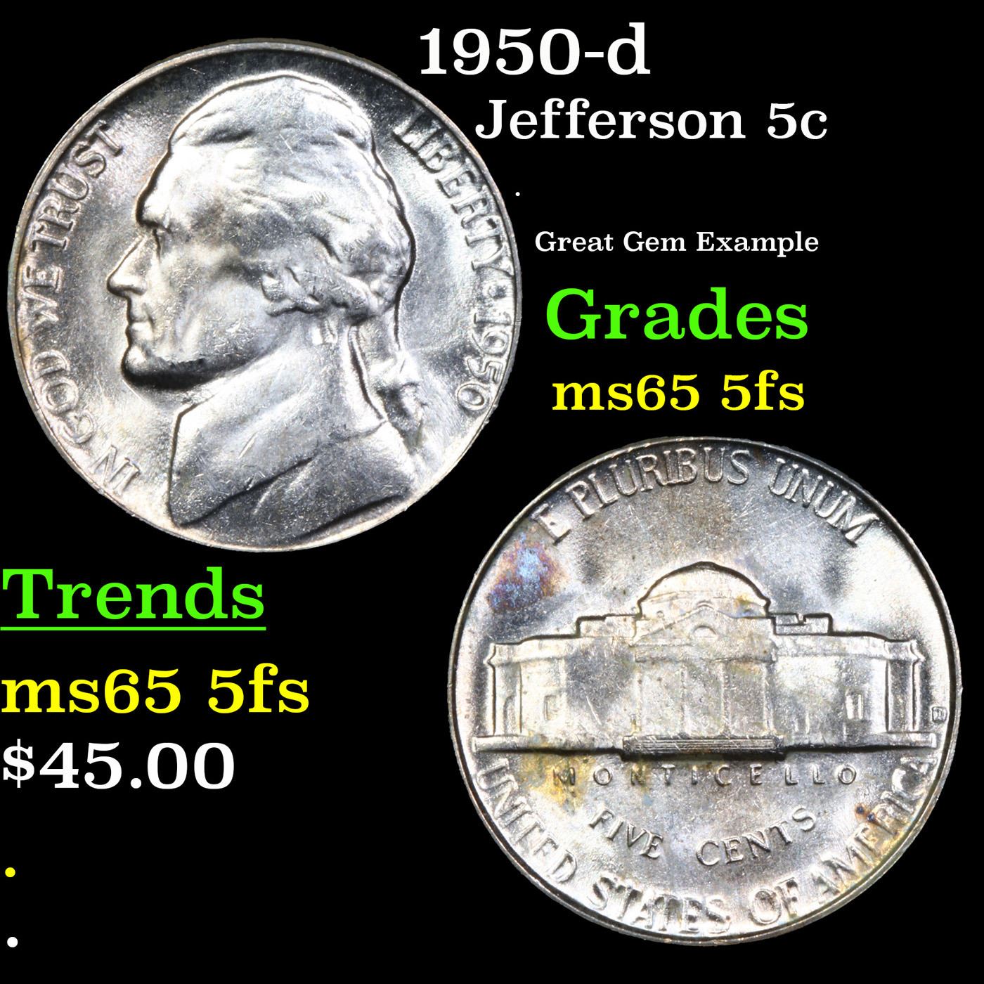 1950-d Jefferson Nickel 5c Grades GEM 5fs.