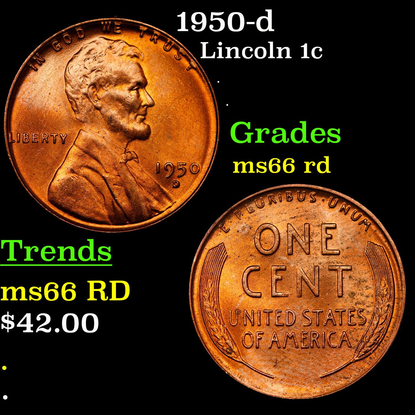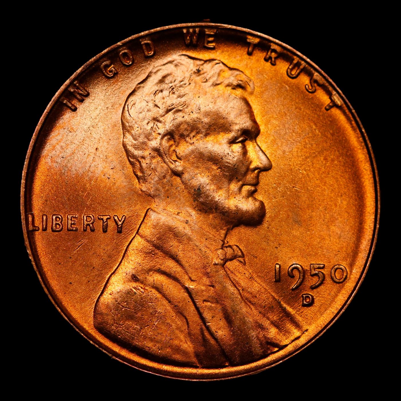 1950-d Lincoln Cent 1c Grades GEM+ Unc RD.