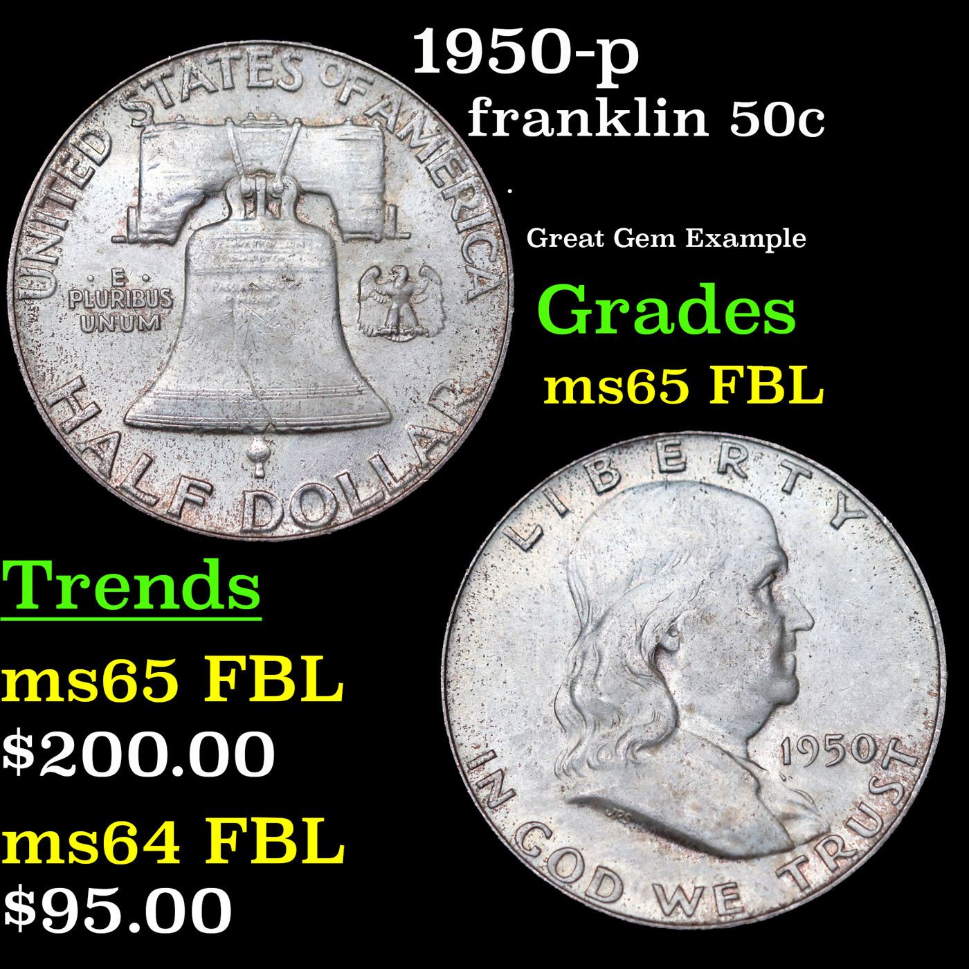 1950-p Franklin Half Dollar 50c Grades GEM FBL.