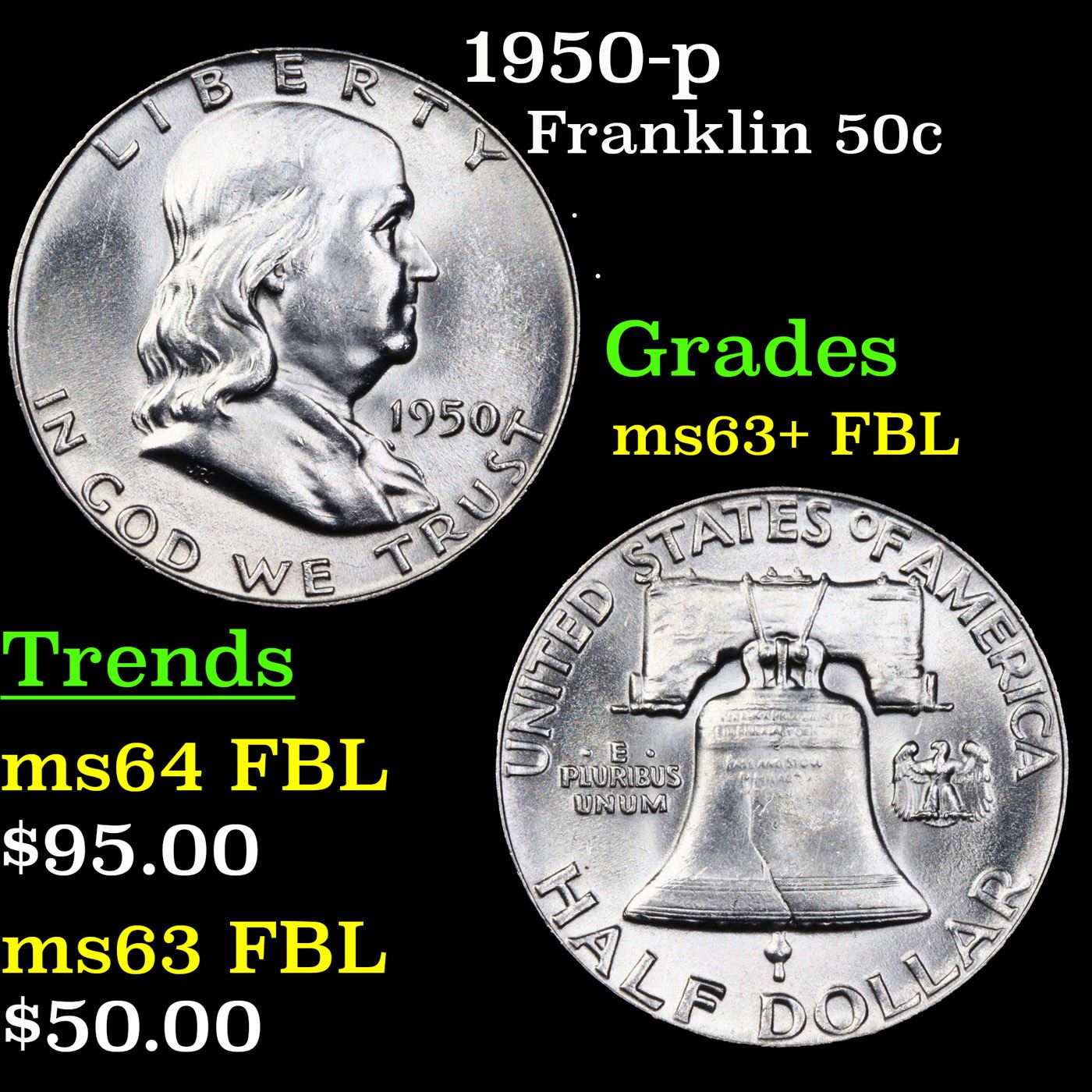 1950-p Franklin Half Dollar 50c Grades Select Unc+ FBL.