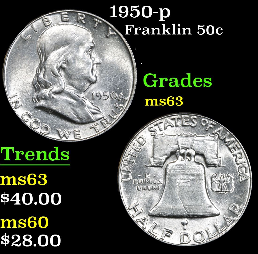 1950-p Franklin Half Dollar 50c Grades Select Unc.