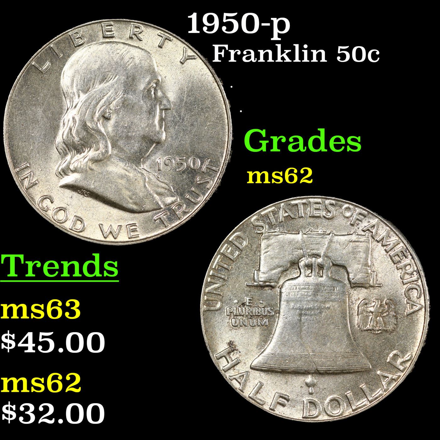 1950-p Franklin Half Dollar 50c Grades Select Unc.