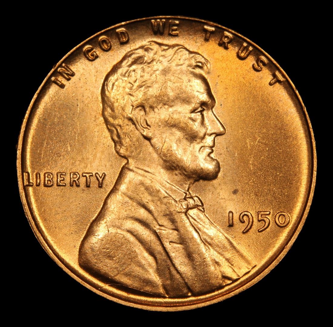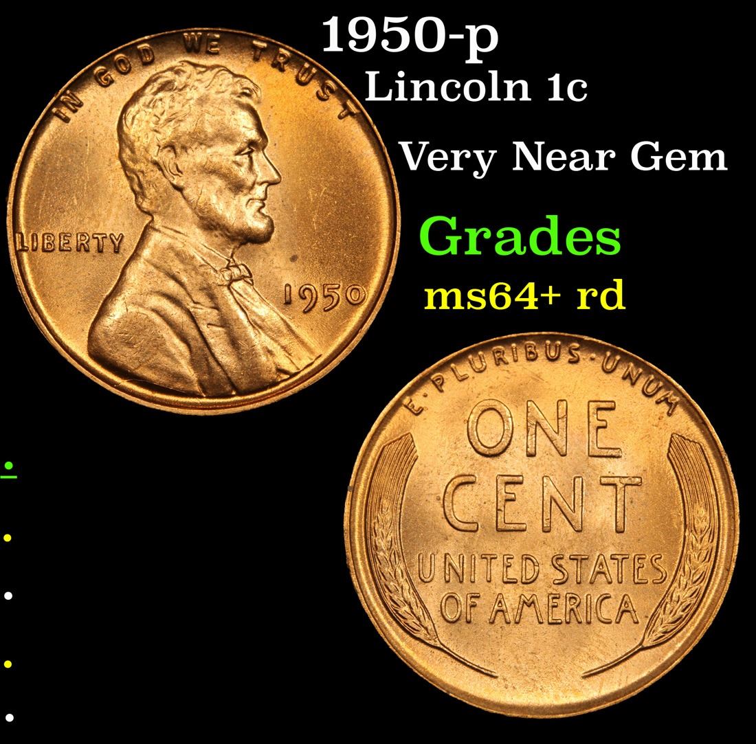 1950-p . Very Near Gem Lincoln Cent 1c Grades Choice+ Unc RD.