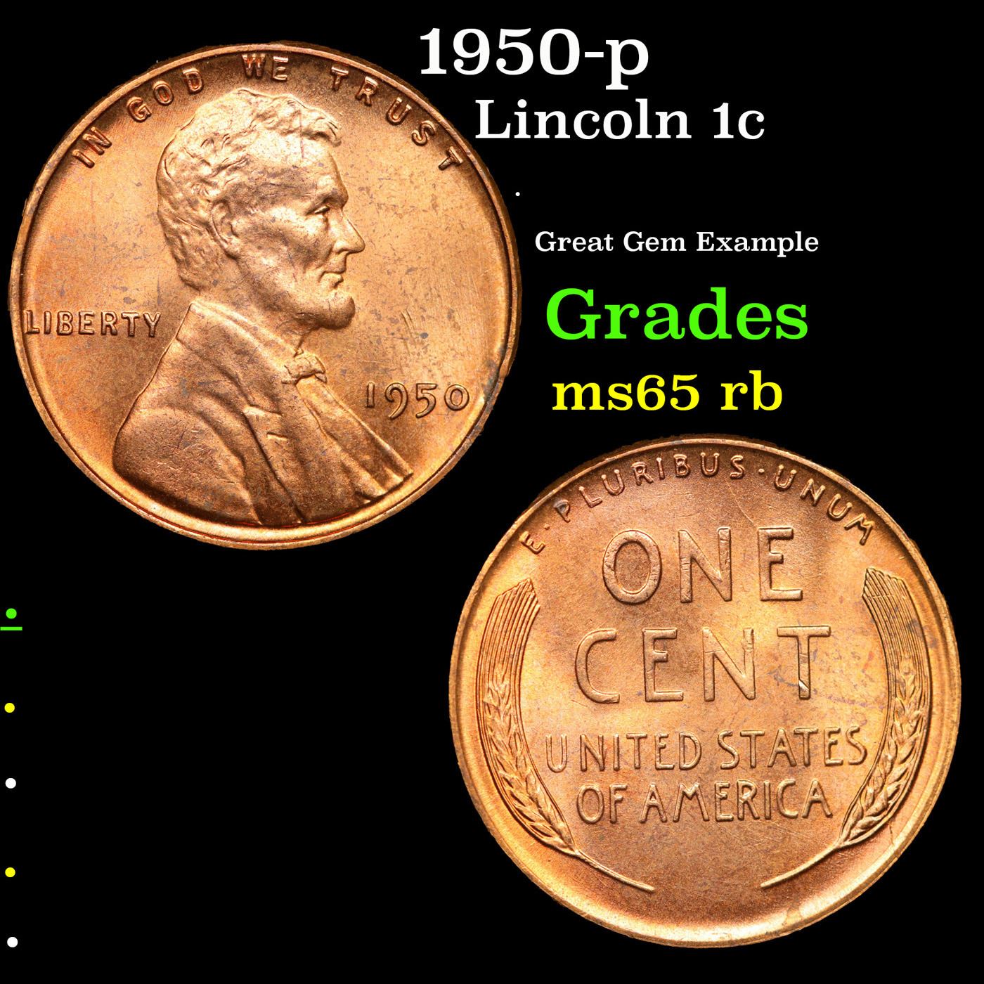 1950-p Lincoln Cent 1c Grades GEM Unc RB.