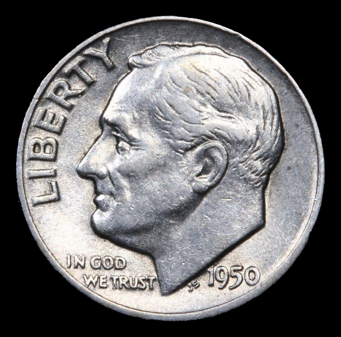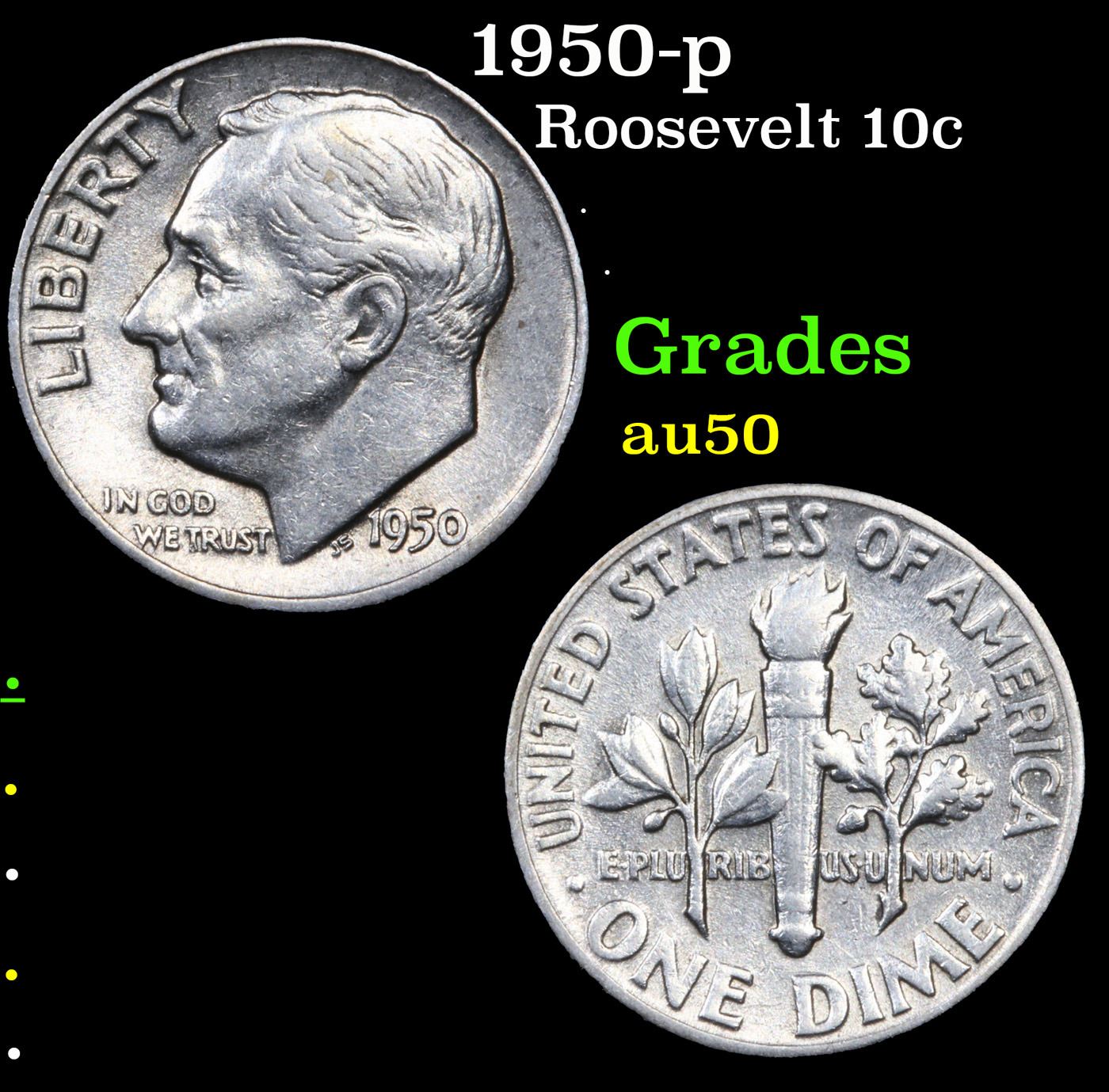 1950-p Roosevelt Dime 10c Grades AU, Almost Unc.