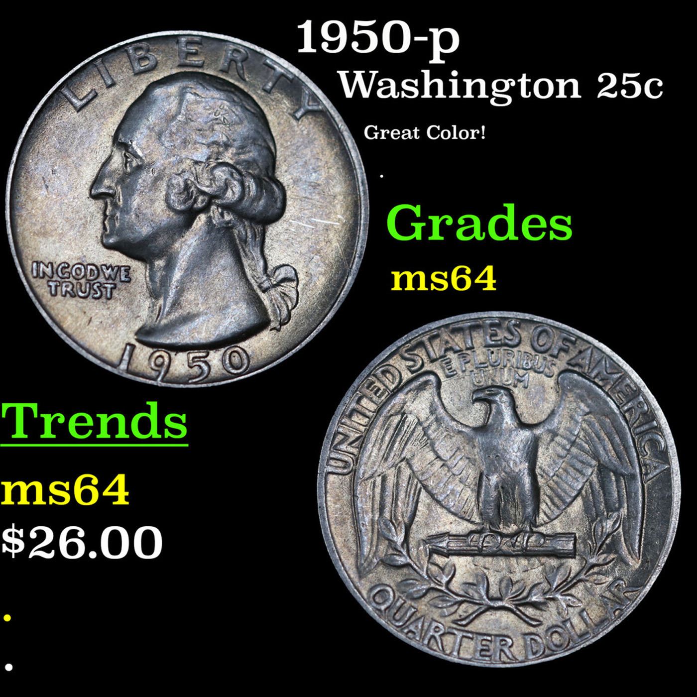 1950-p Washington Quarter 25c Grades Choice Unc.