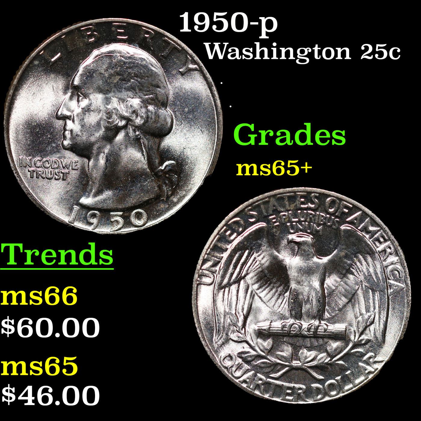 1950-p Washington Quarter 25c Grades GEM+ Unc.