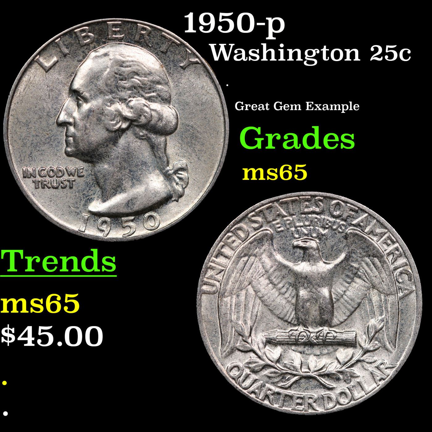 1950-p Washington Quarter 25c Grades GEM Unc.