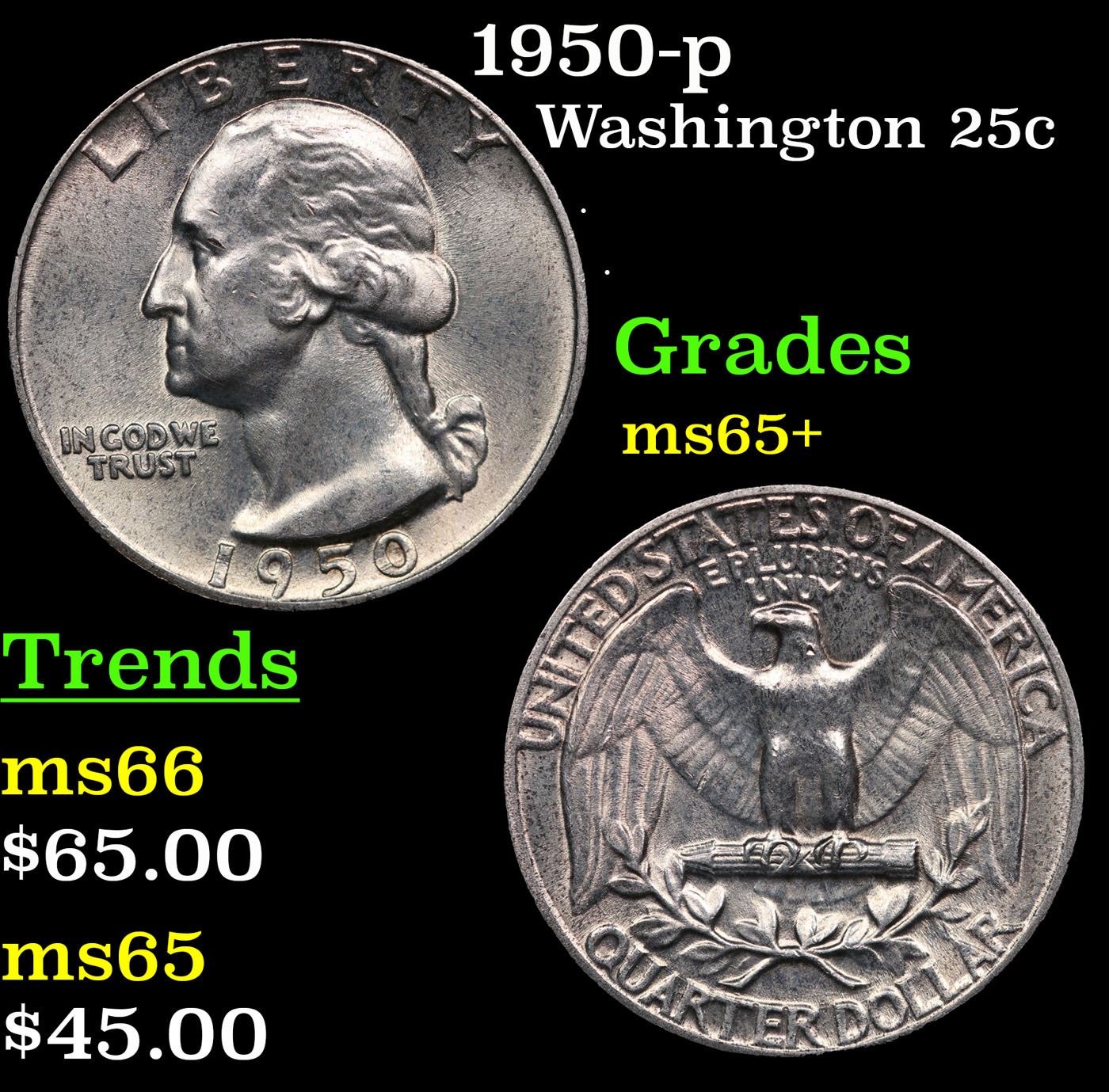 1950-p Washington Quarter 25c Grades GEM+ Unc.