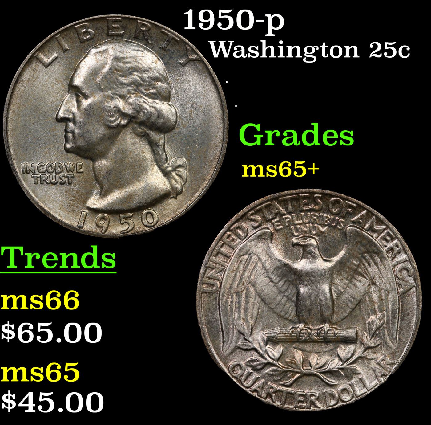 1950-p Washington Quarter 25c Grades GEM+ Unc.
