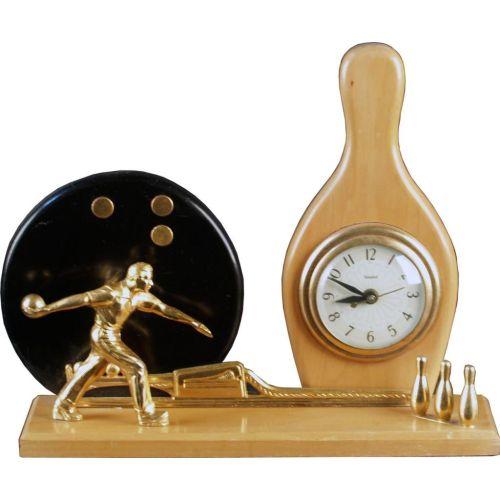 1950's Bowling Motif Clock Depicts Ball, Pin & Lane