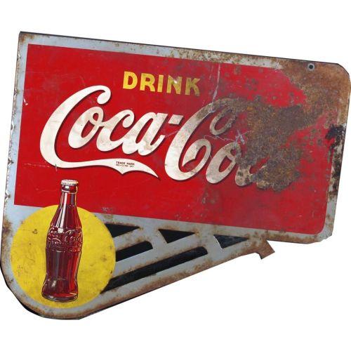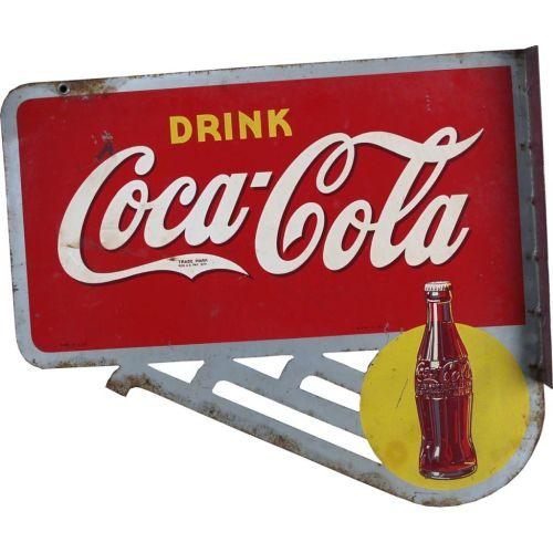 1950's Coca-Cola 2-sided Flange Sign 22 x 24 (1 side fair and 1 side poor condition)