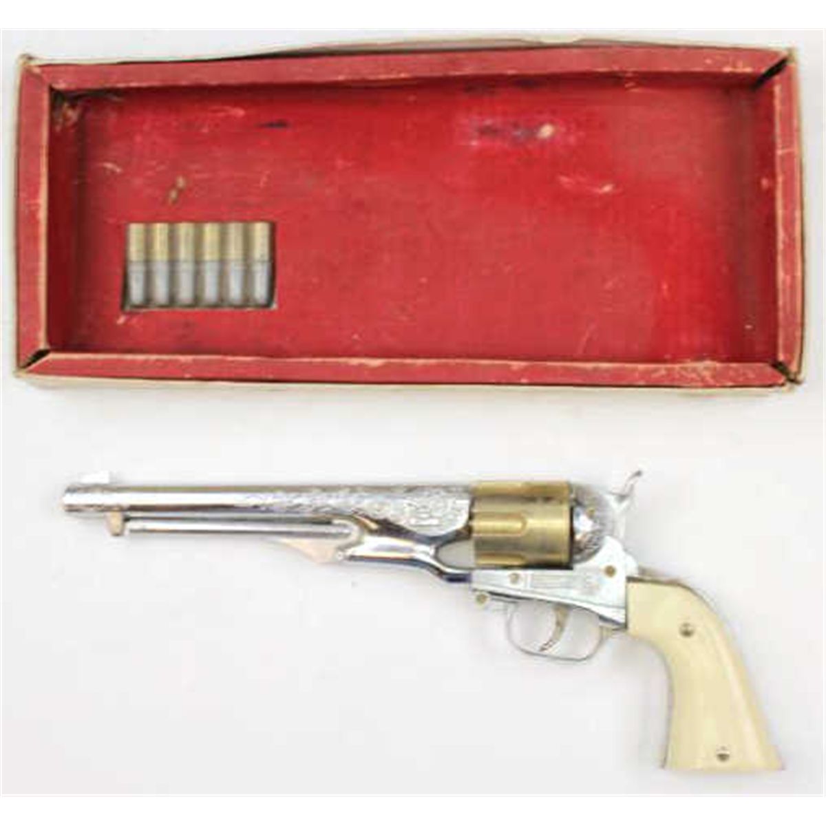 1950's Colt cap gun with original bottom portion of box remaines in very good condition, based on 1860 model.