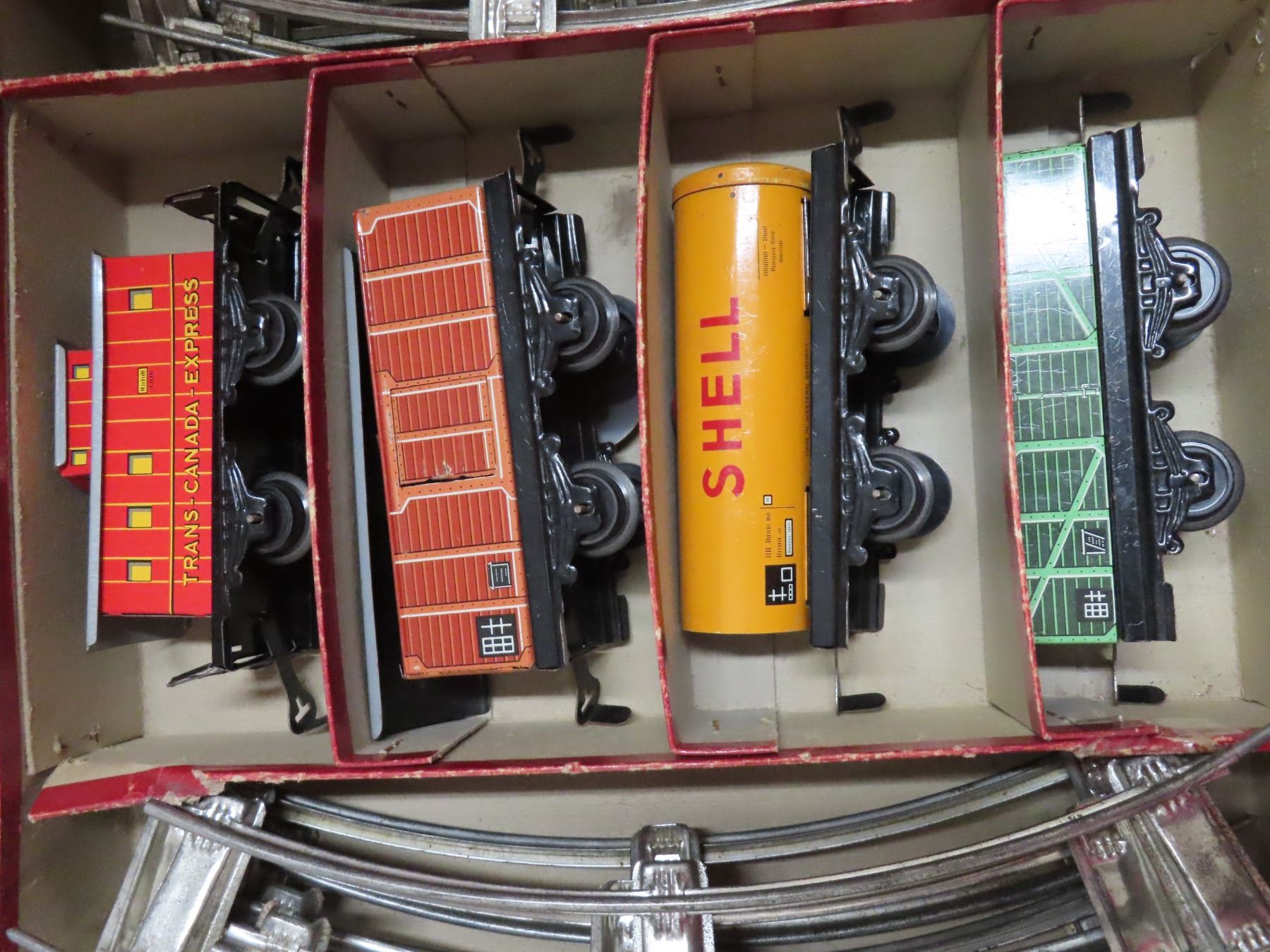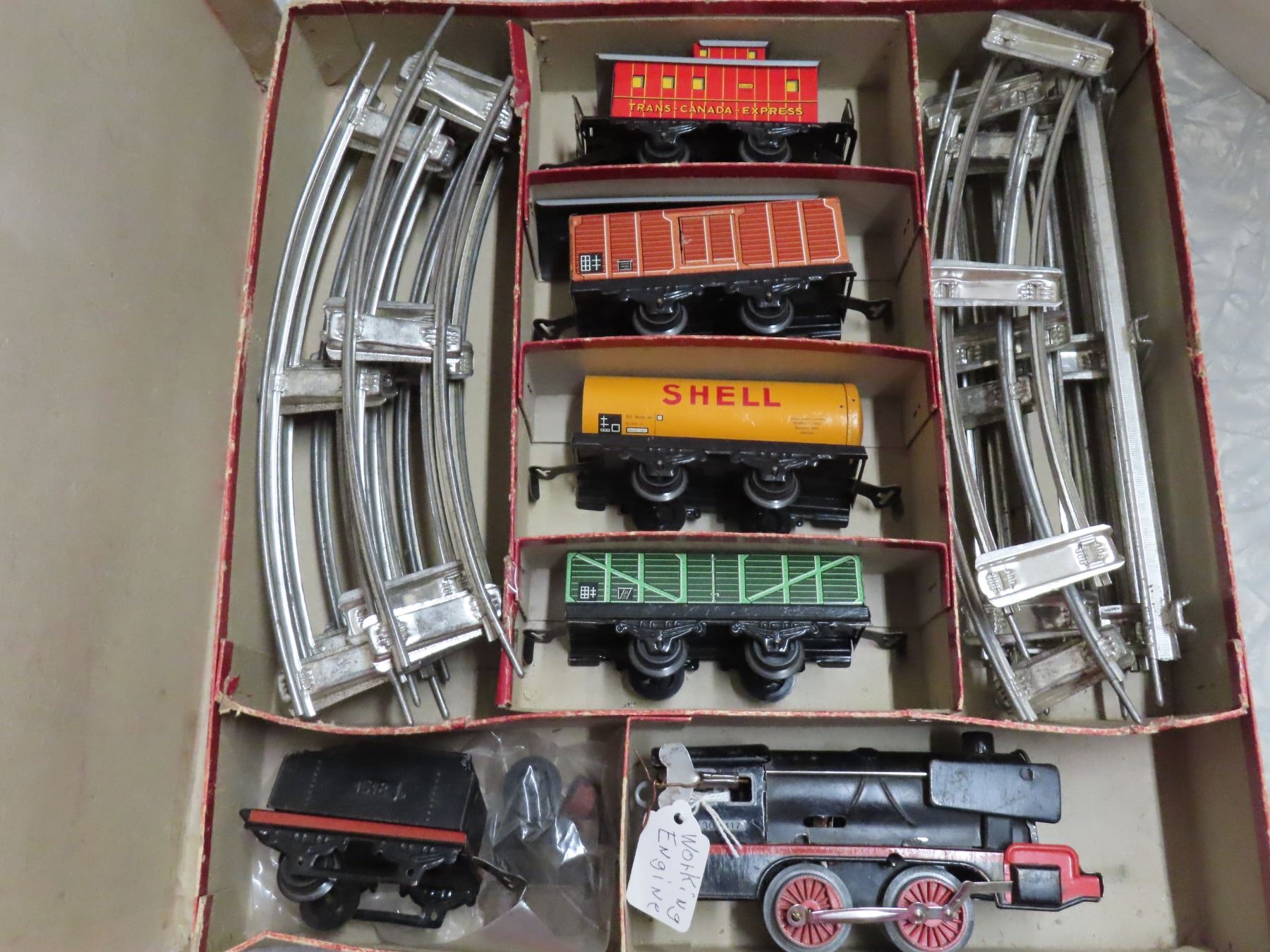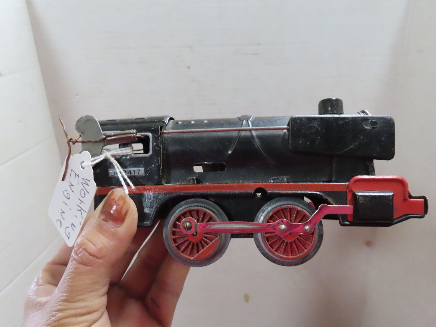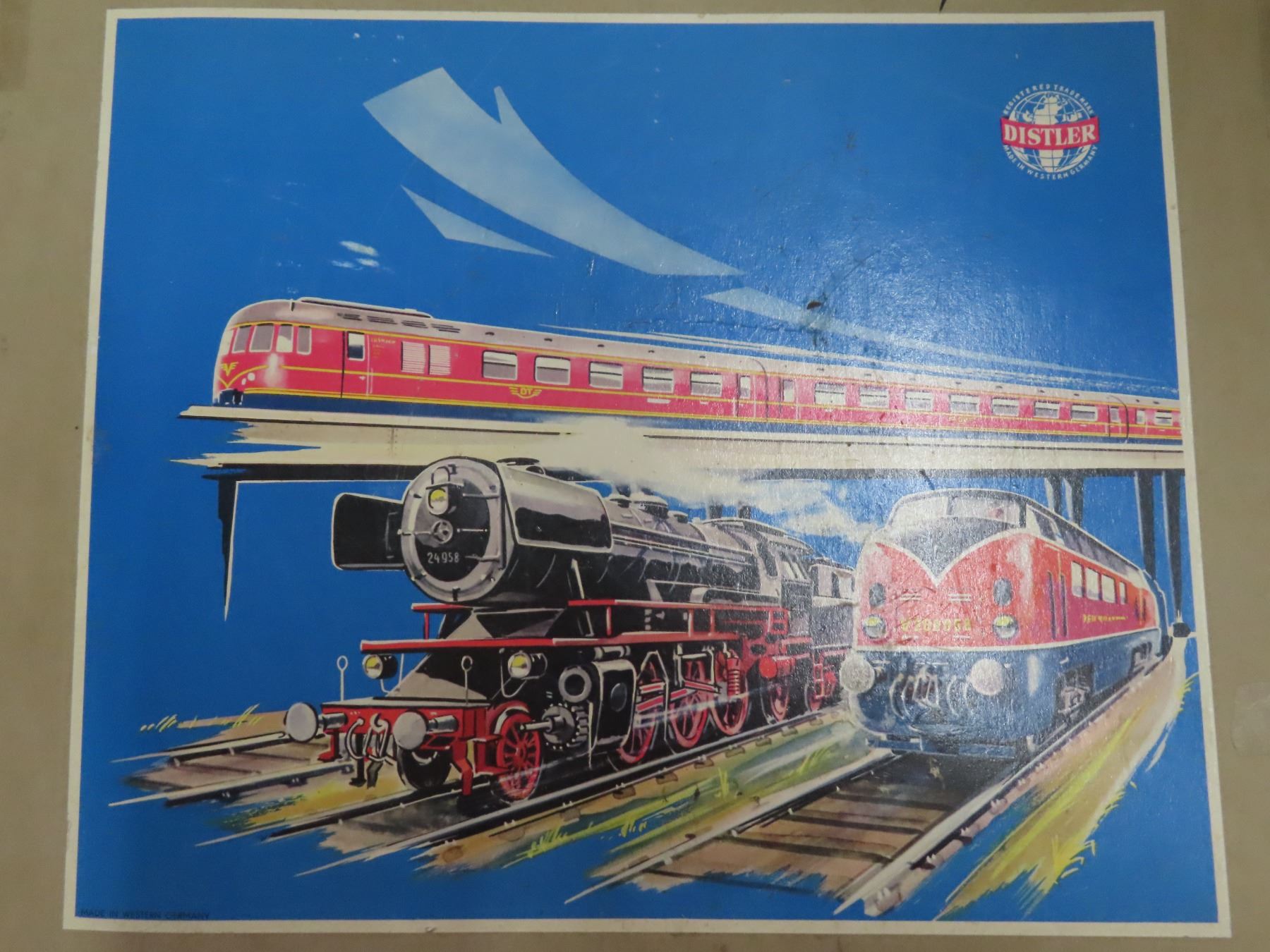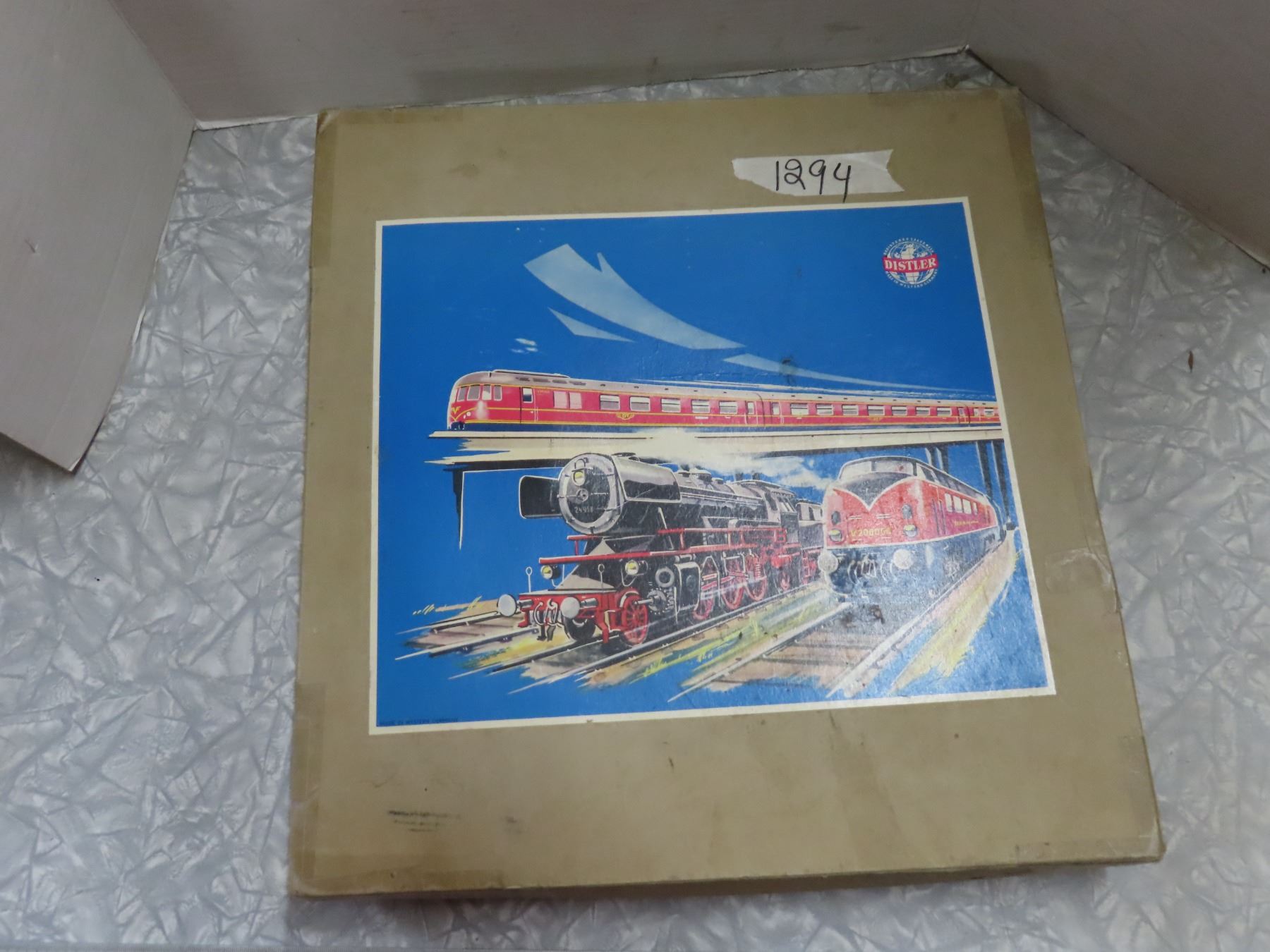 1950's "Distler" keywind tin toy train set appears complete, in original box
