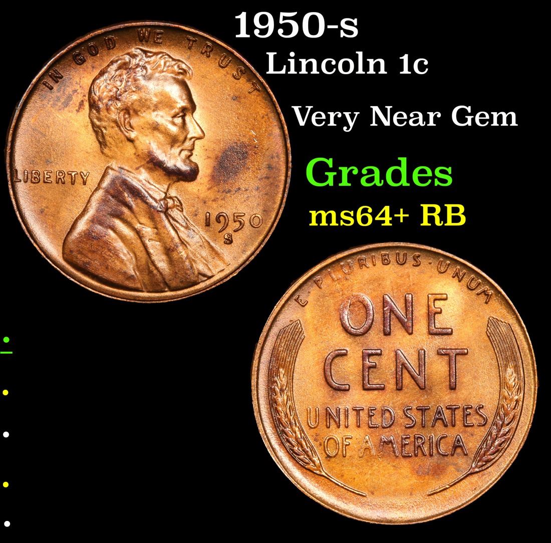 1950-s . Very Near Gem Lincoln Cent 1c Grades Choice+ Unc RB.