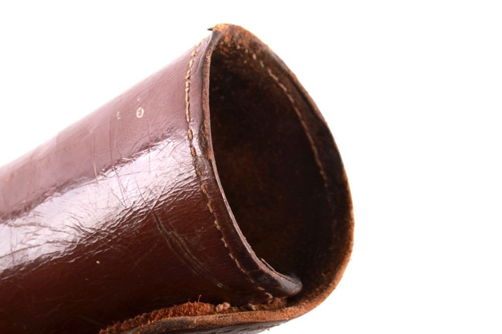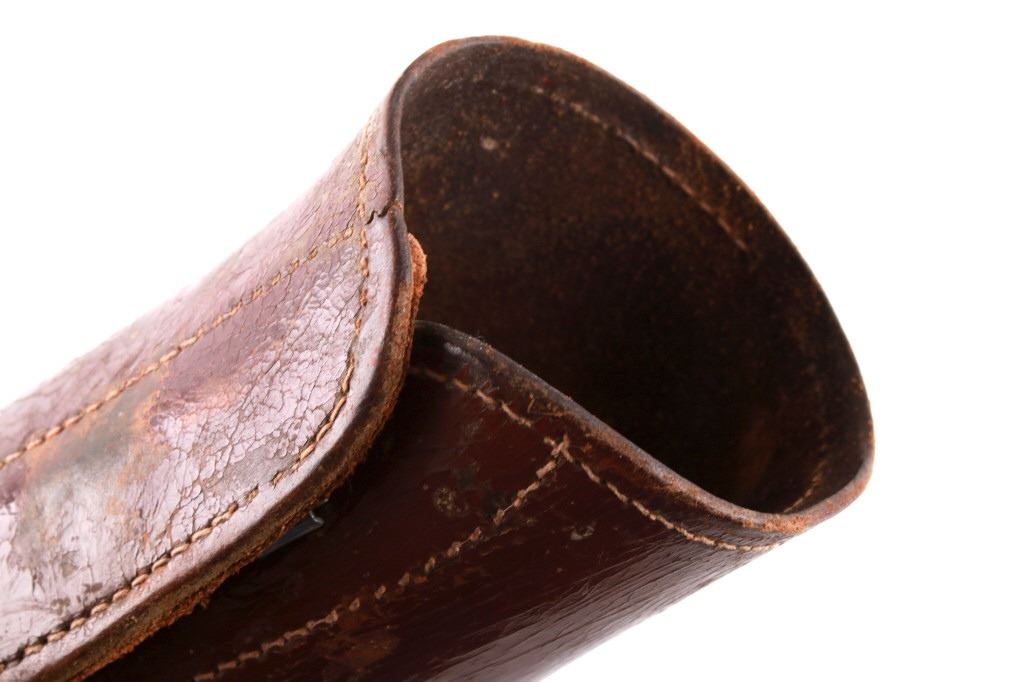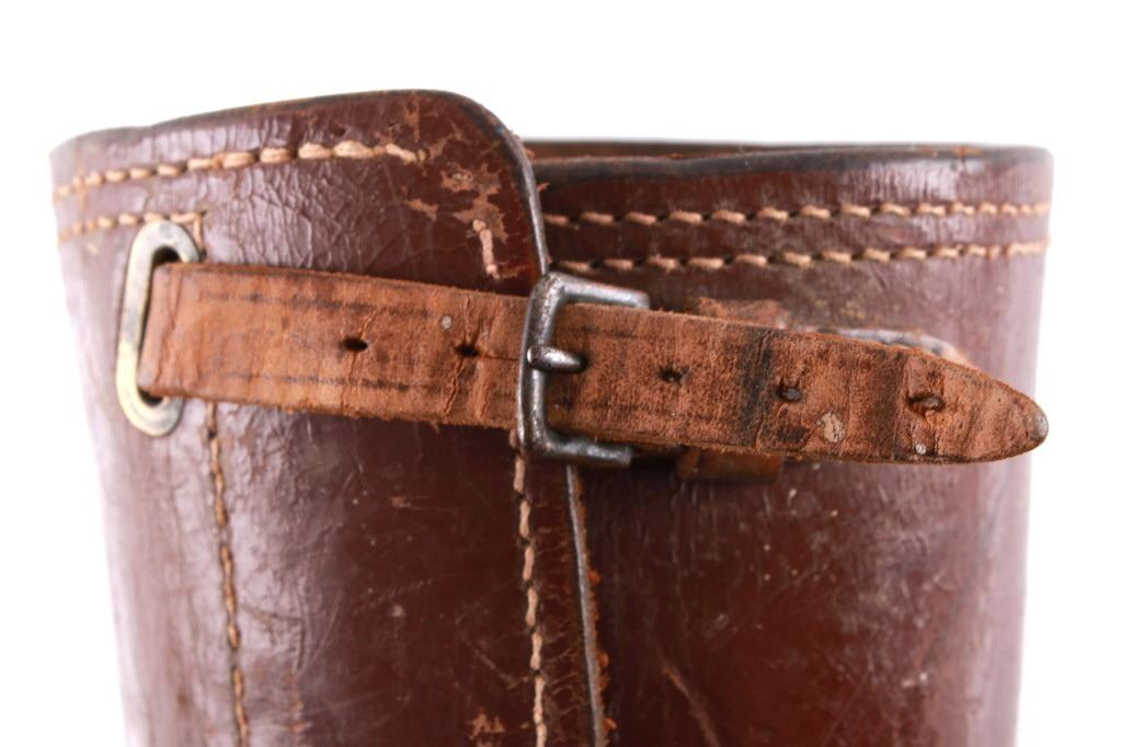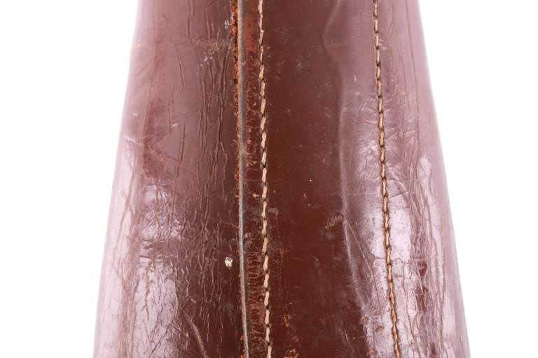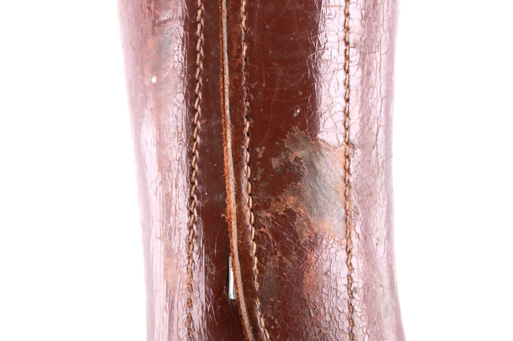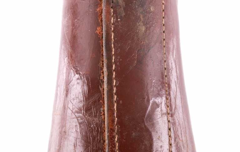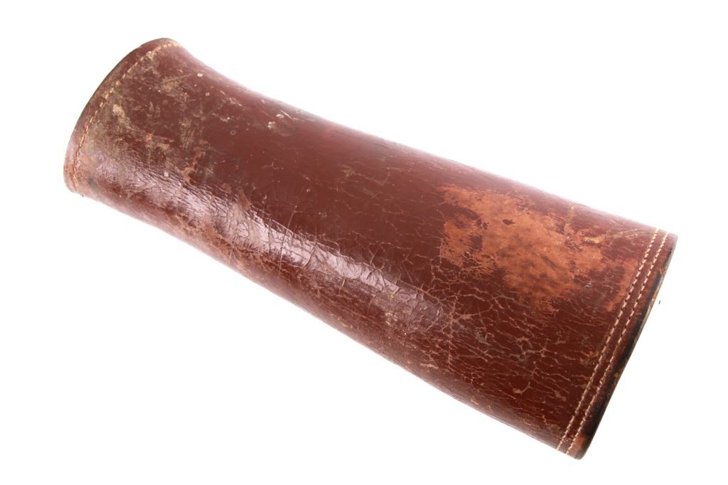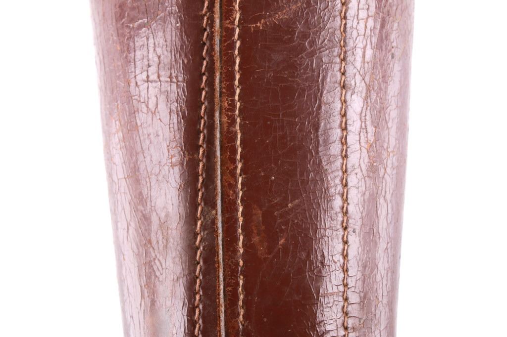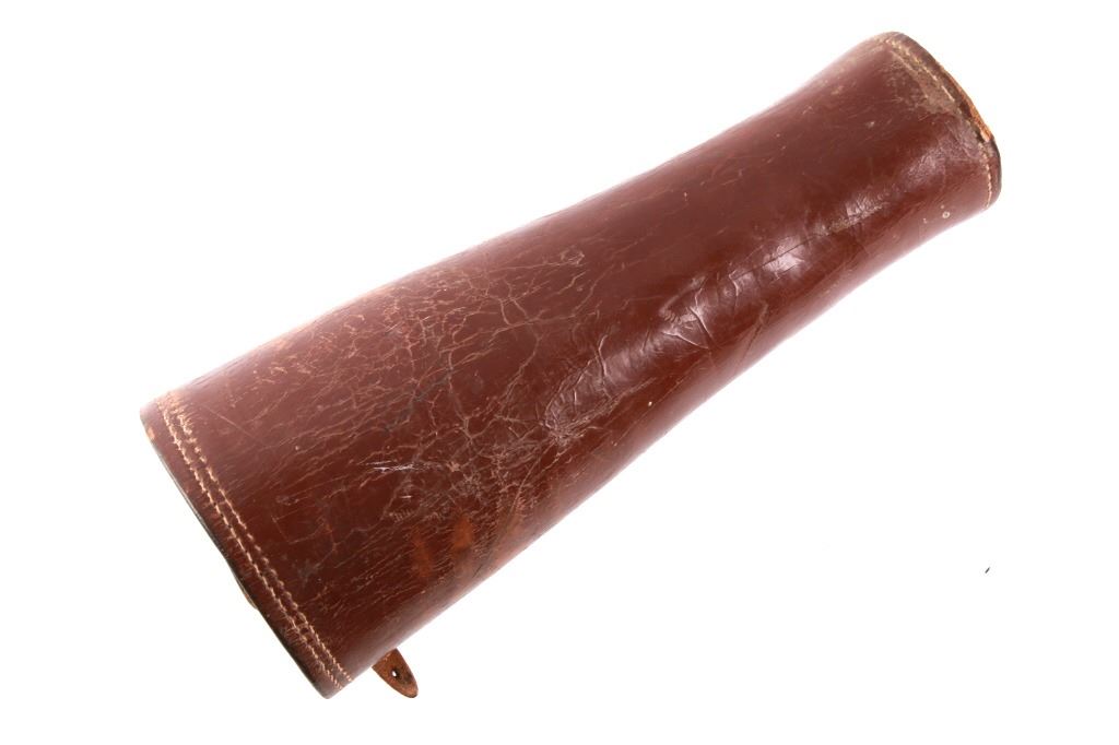 Featured in this lot is this pair of rodeo pickup man leather kickpads circa 1950's. There are two kickpads in this pair that show heavy leather construction with stainless steel slot clasp with bands of leather with buckle constructions. Kickpads are are leg bracers used to protect pickup men from getting kicked by a bucking horse. The condition of these pair of kickpads are good with some wear consistent with the age of the leather but otherwise in good overall condition. The measurements of these kickpads are 5" x 4 1/2" x 11 3/4".