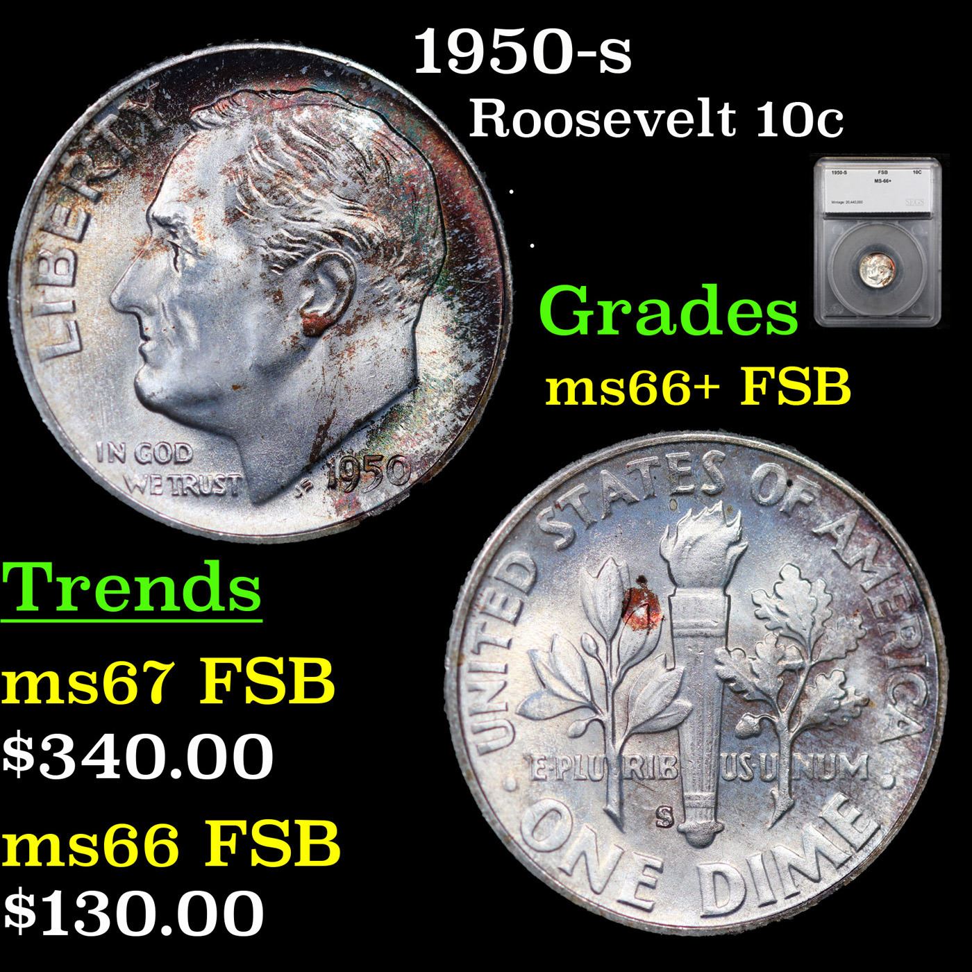 1950-s Roosevelt Dime 10c Graded ms66+ FSB By SEGS.