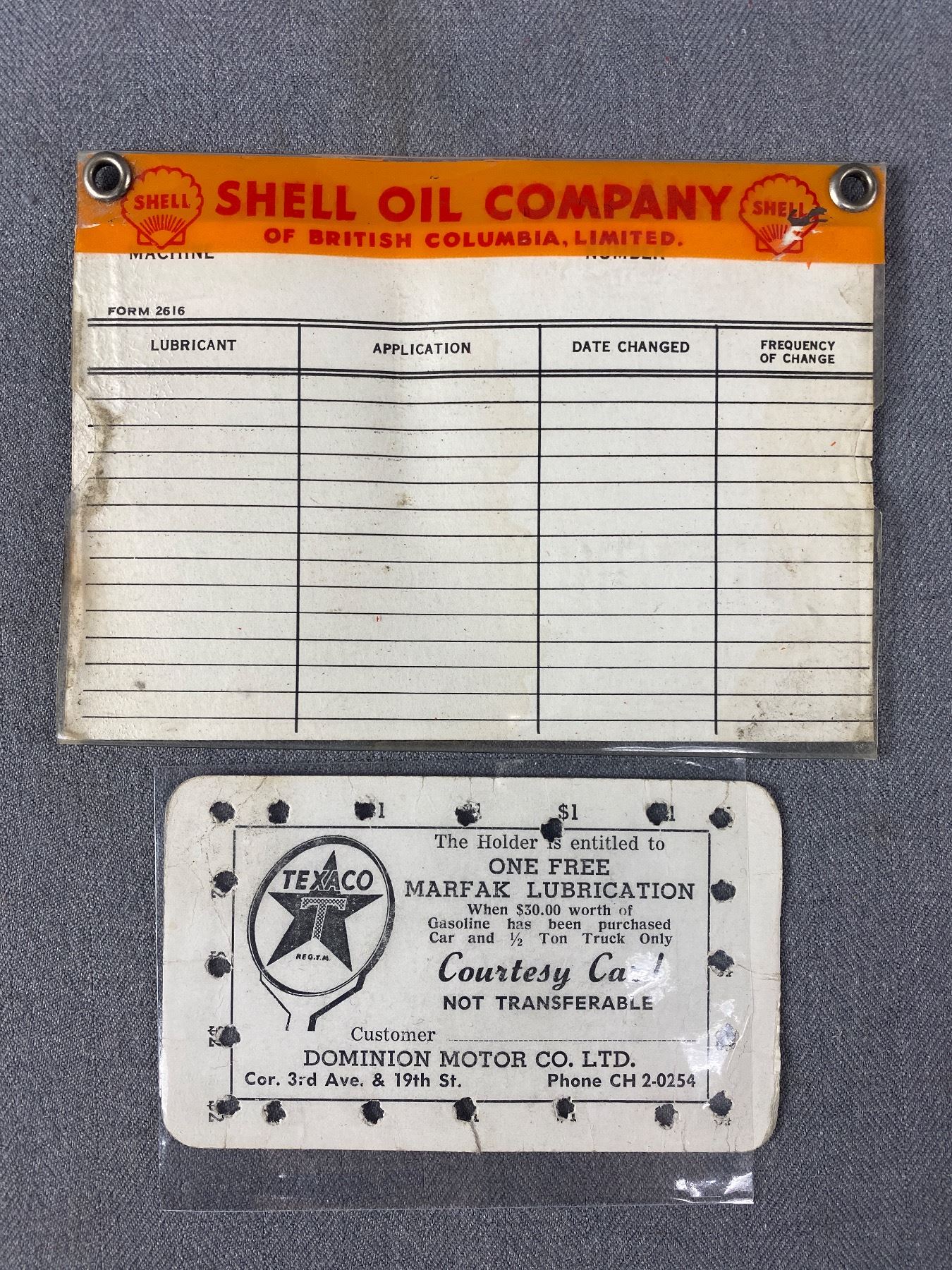 1950's Shell Oil/Texaco Oil Change Cards