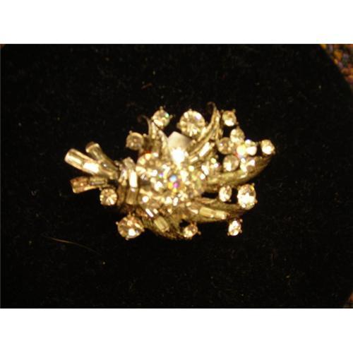 <tr><td>Title:1950?s Silver Tone Rhinestone Floral Brooch</td></tr>