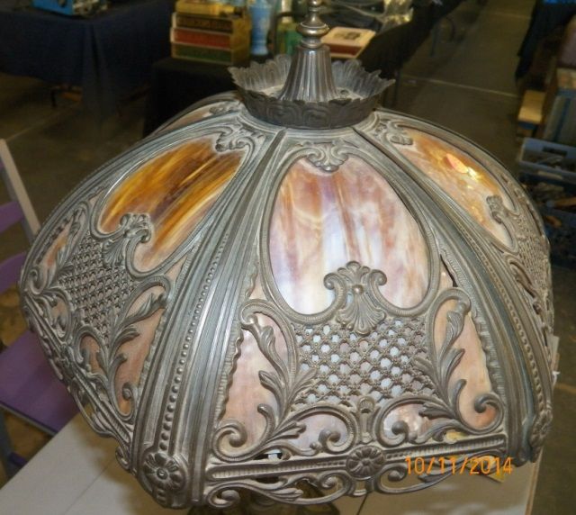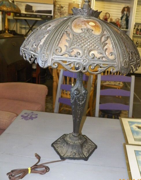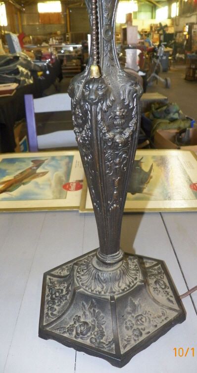 1930's Style Figural Metal Glass Lamp with Slag Glass Shade (very nice lamp)