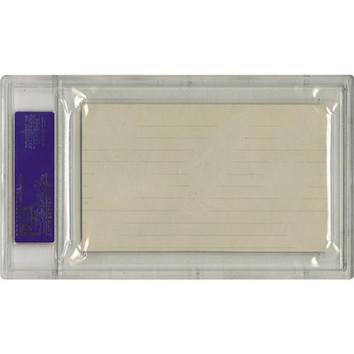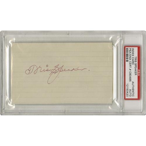 <B>1950's Tris Speaker Signed Index Card.</B></I> The greatest center fielder of his day, Speaker was one of the few ballplayers who challenged the great Ty Cobb for Major League supremacy. Here we find his 10/10 red ink signature, applied to the lined side of a 3x5" index card. Encapsulated by PSA/DNA for protection and unquestioned authenticity.<BR><BR><b>Shipping:</b> Sportscard (<a target="_blank" href="http://www.heritageauctions.com/common/shipping.php">view shipping information</a>)