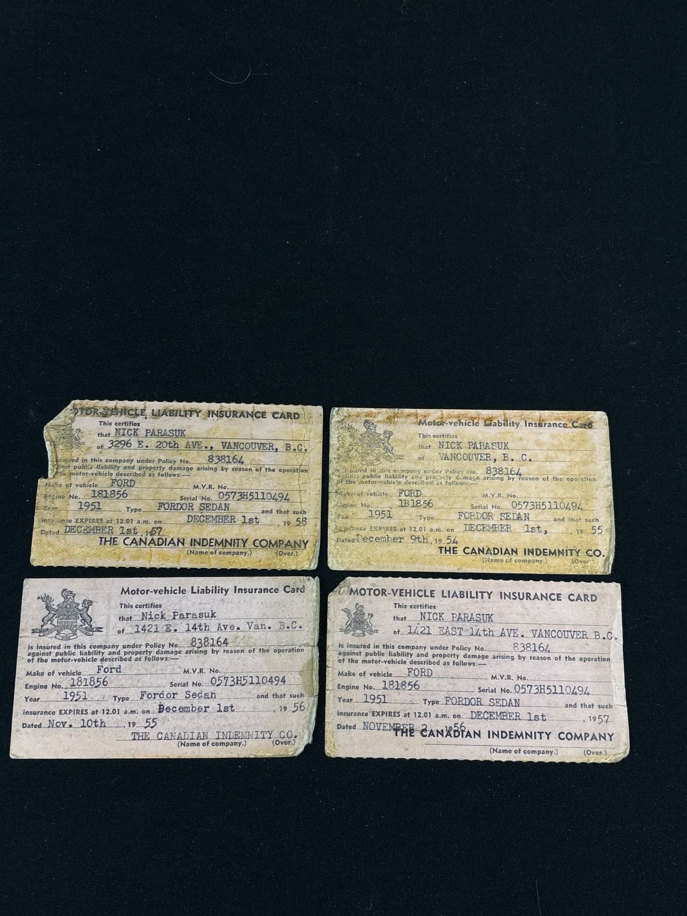 1950's Vancouver Street By-Law Book + 4 Motor Vehicle Liability Cards