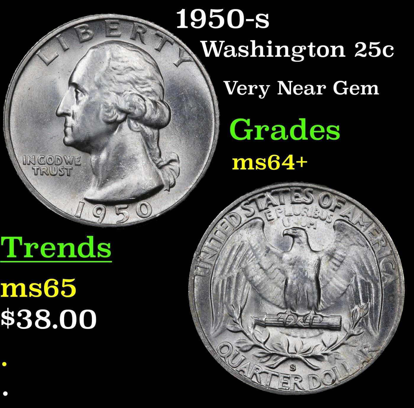 1950-s Washington Quarter 25c Grades Choice+ Unc.
