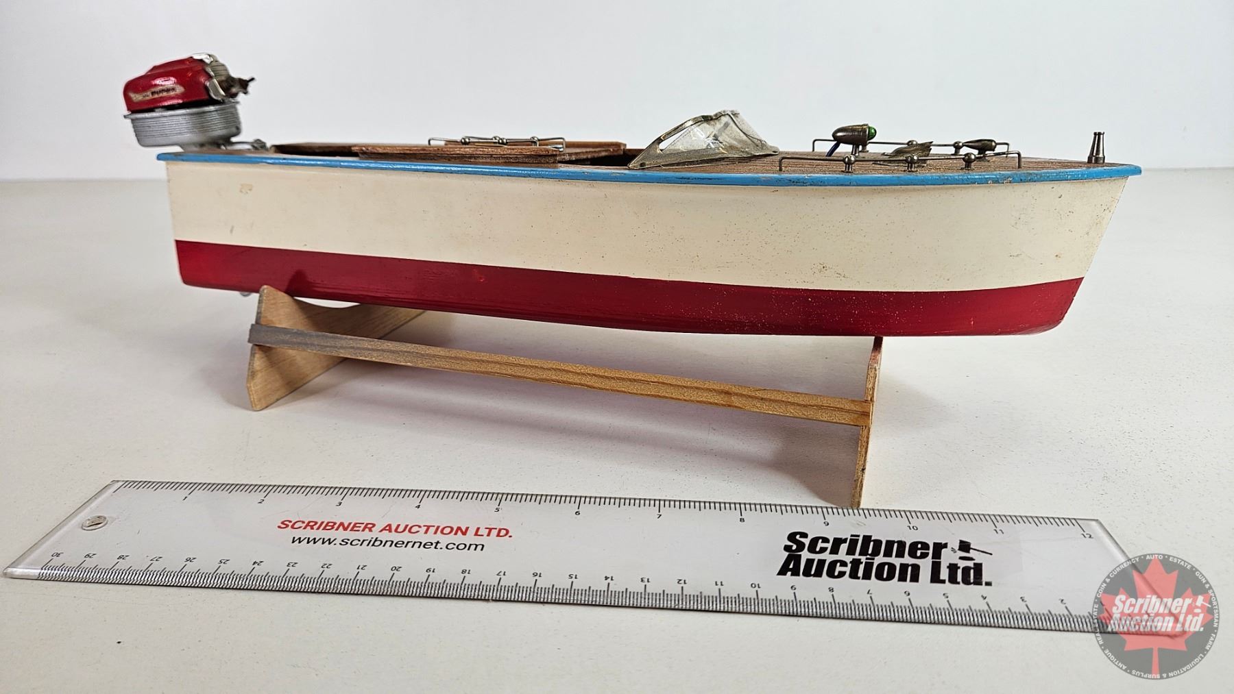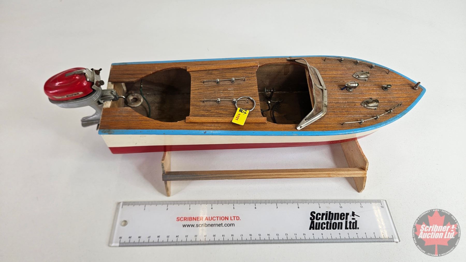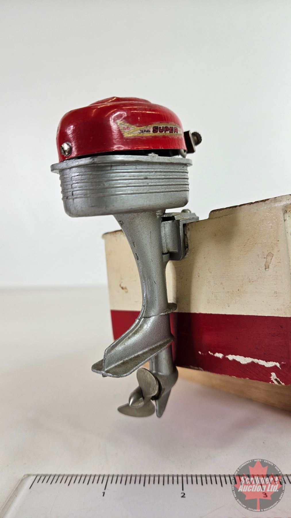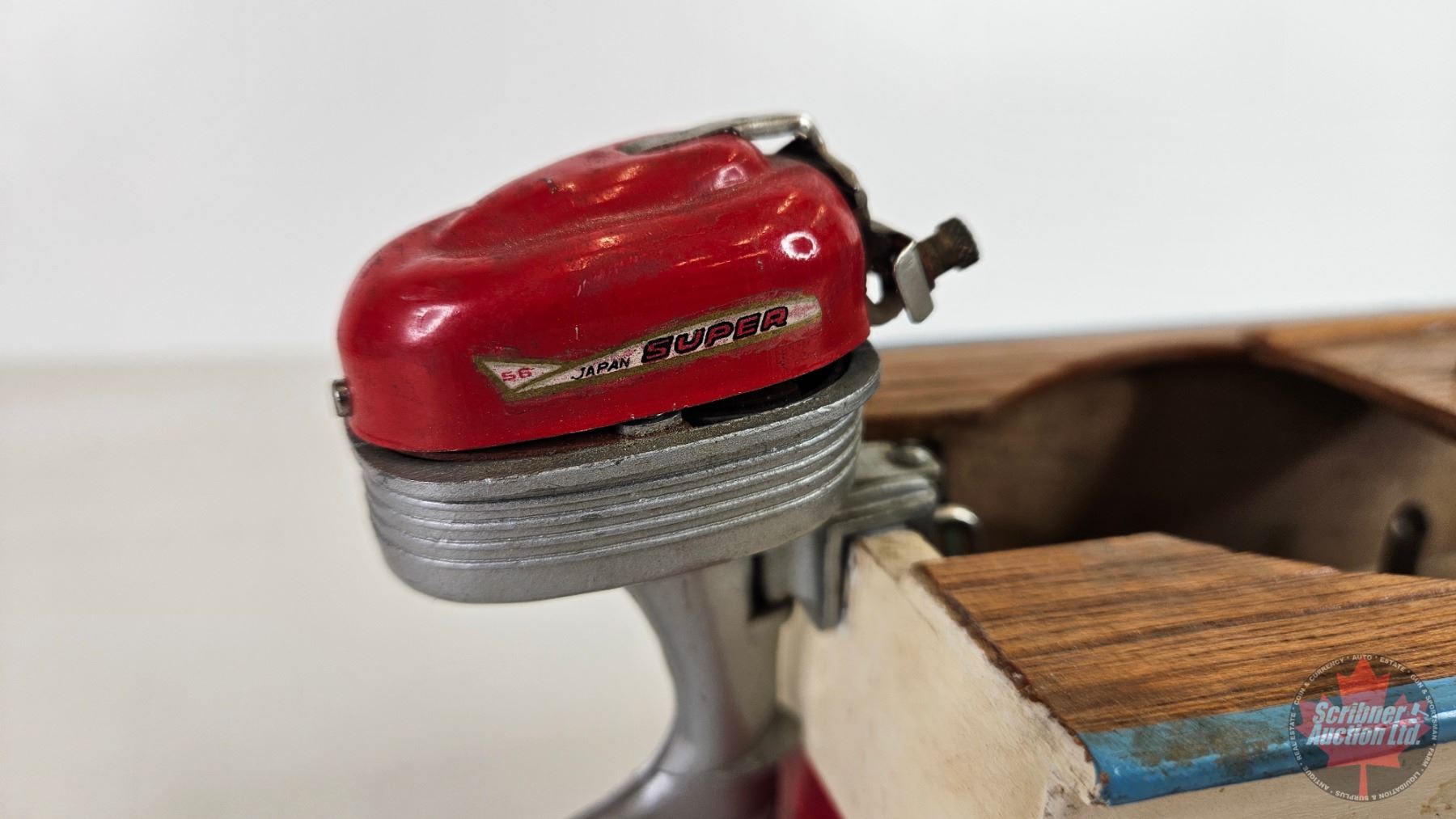 1950's Wooden Toy Boat with Working Outboard Motor (Batt Op)