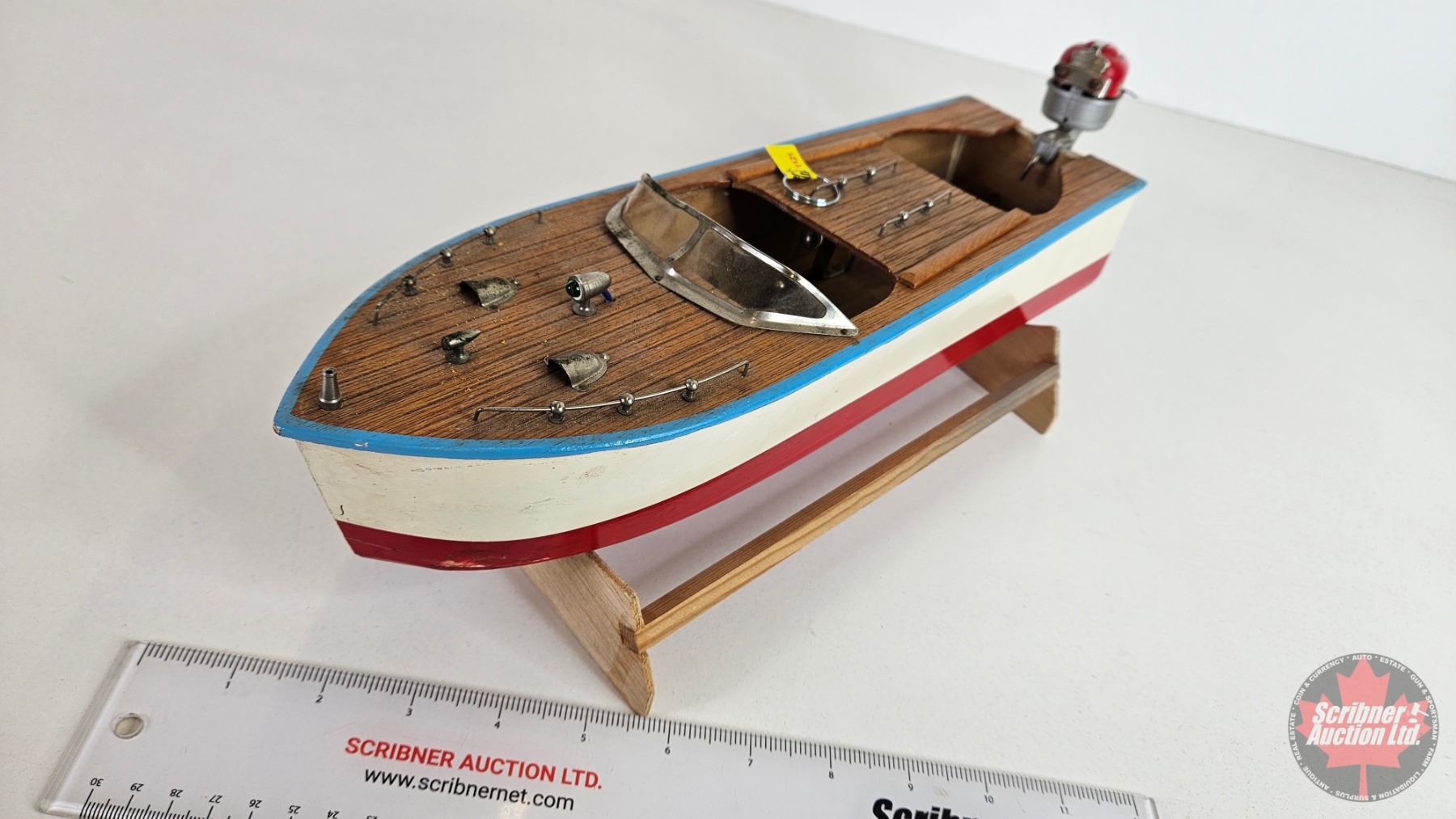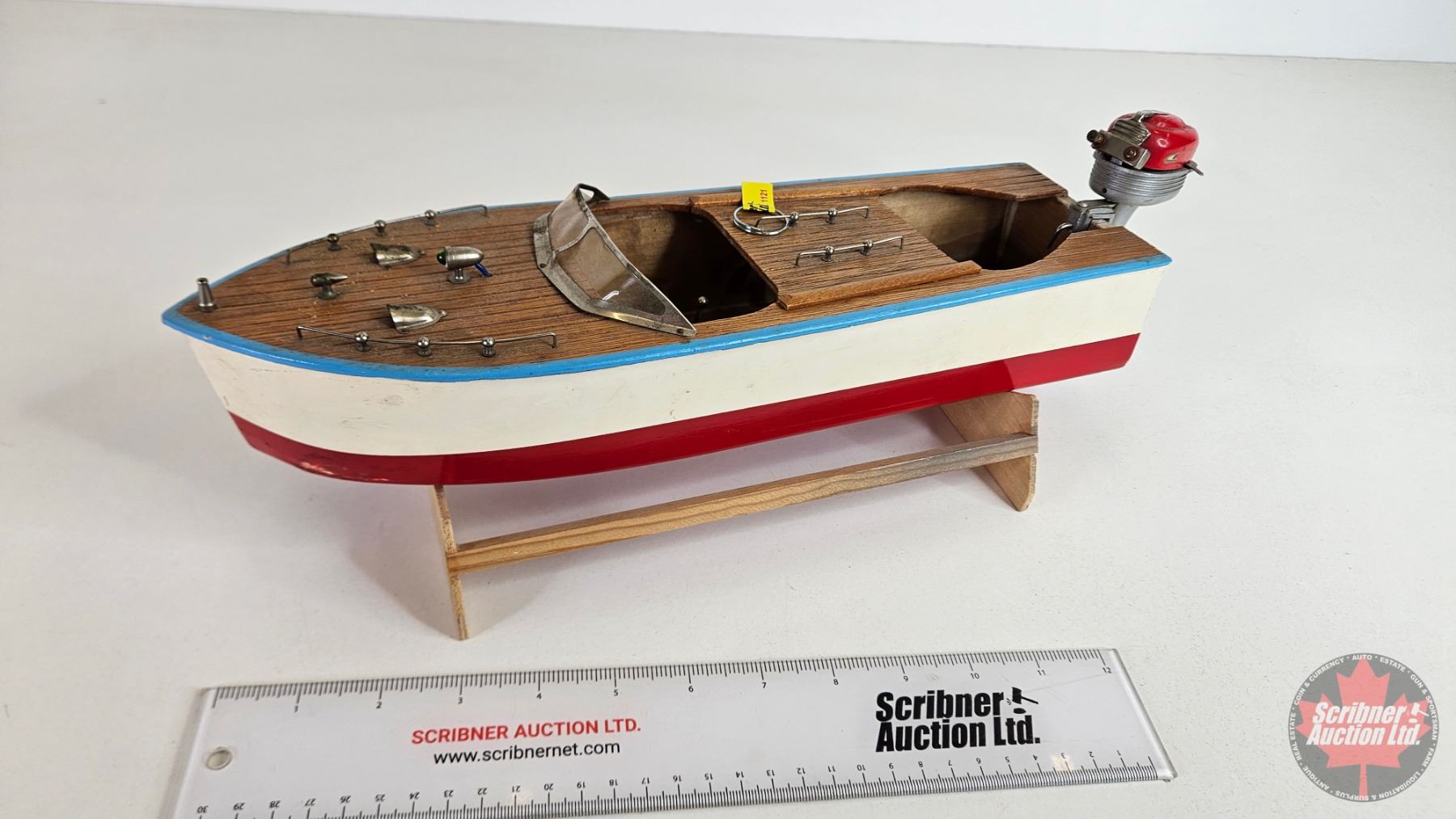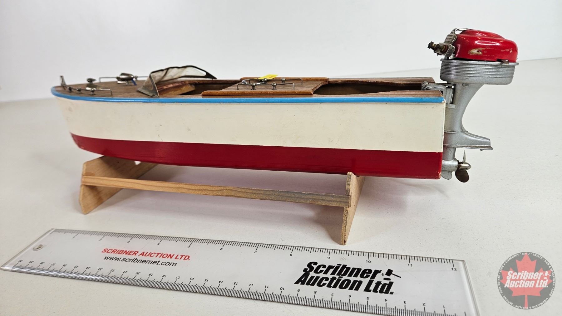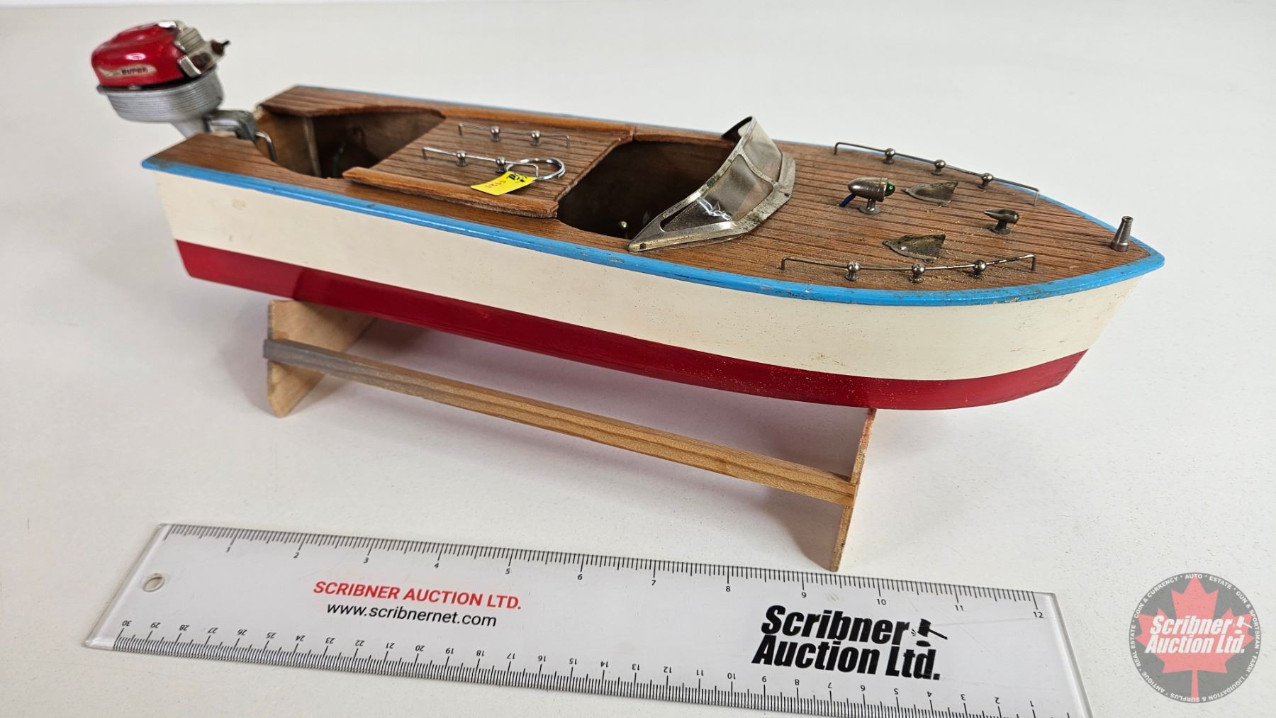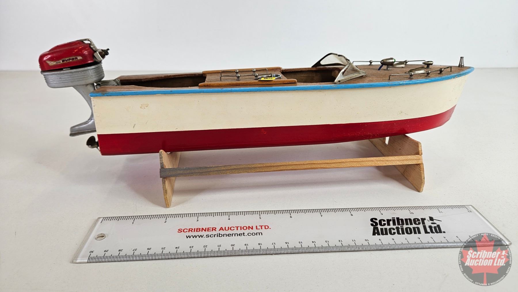 1950's Wooden Toy Boat with Working Outboard Motor (Batt Op)